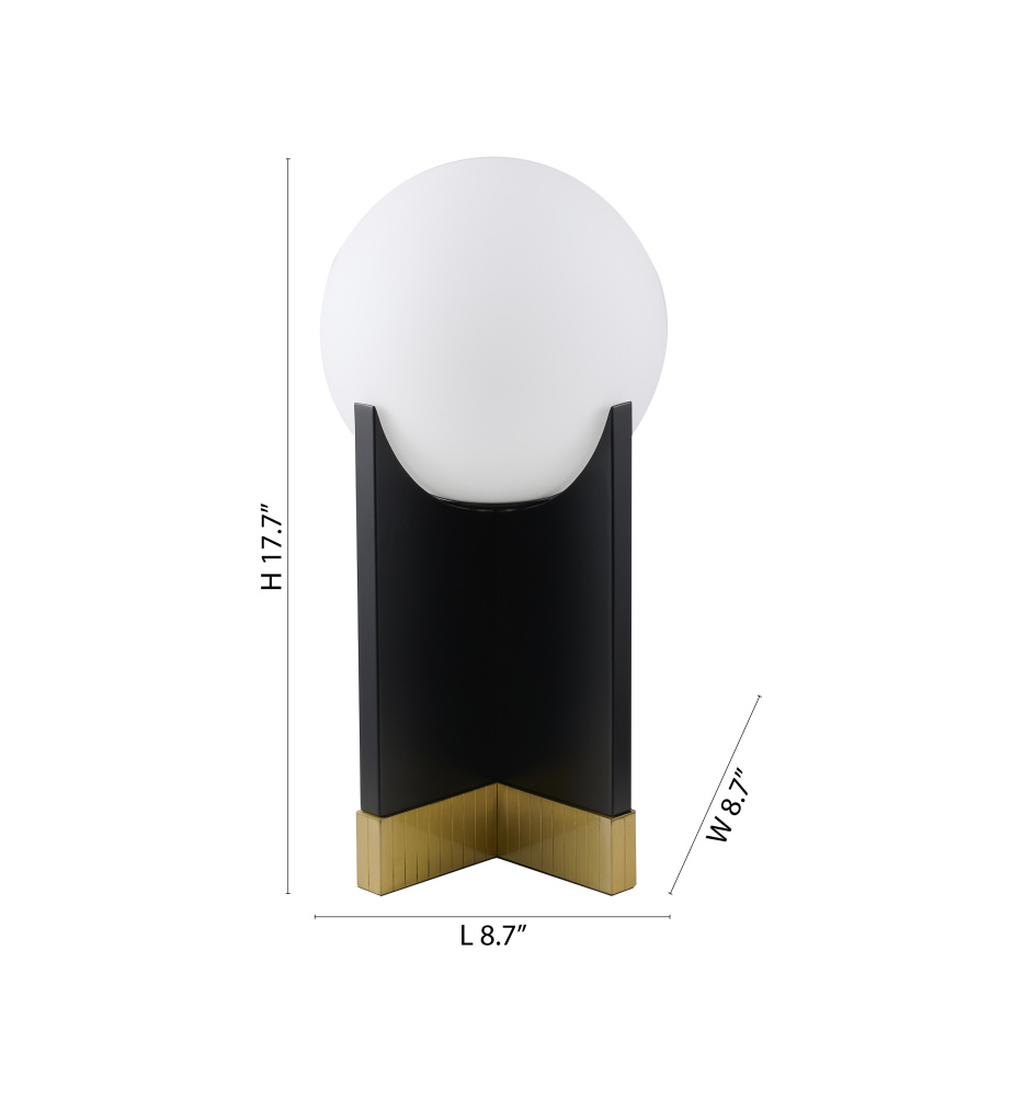 This transitional table lamp boasts a unique combination of materials, featuring a stain brass stainless steel and black iron base and a white glass shade. Crafted from stainless steel, iron, and glass, this lamp is both durable and visually striking. The assembly required for this lamp may add some extra time and effort to the installation process, but the end result will be well worth it. One thing to note is that this lamp is non-dimmmable, meaning the light level cannot be adjusted. Additionally, the bulb is not included, so you'll need to choose the perfect ones to fit your style and lighting needs. Whether you're looking to add a touch of glamour to a bedroom, living room, or reading room, this table lamp is sure to impress.