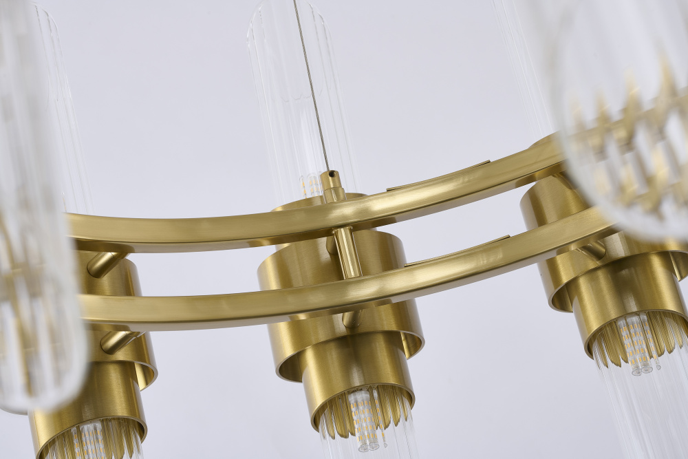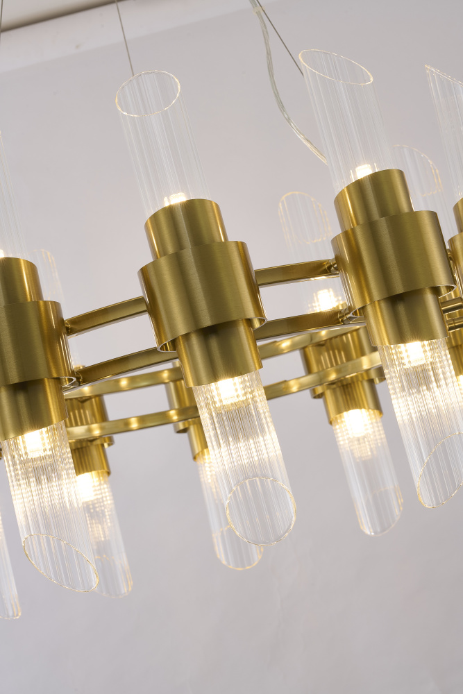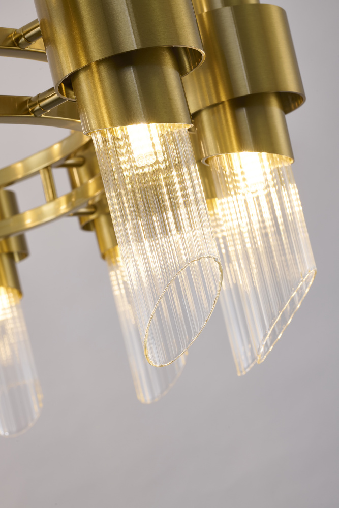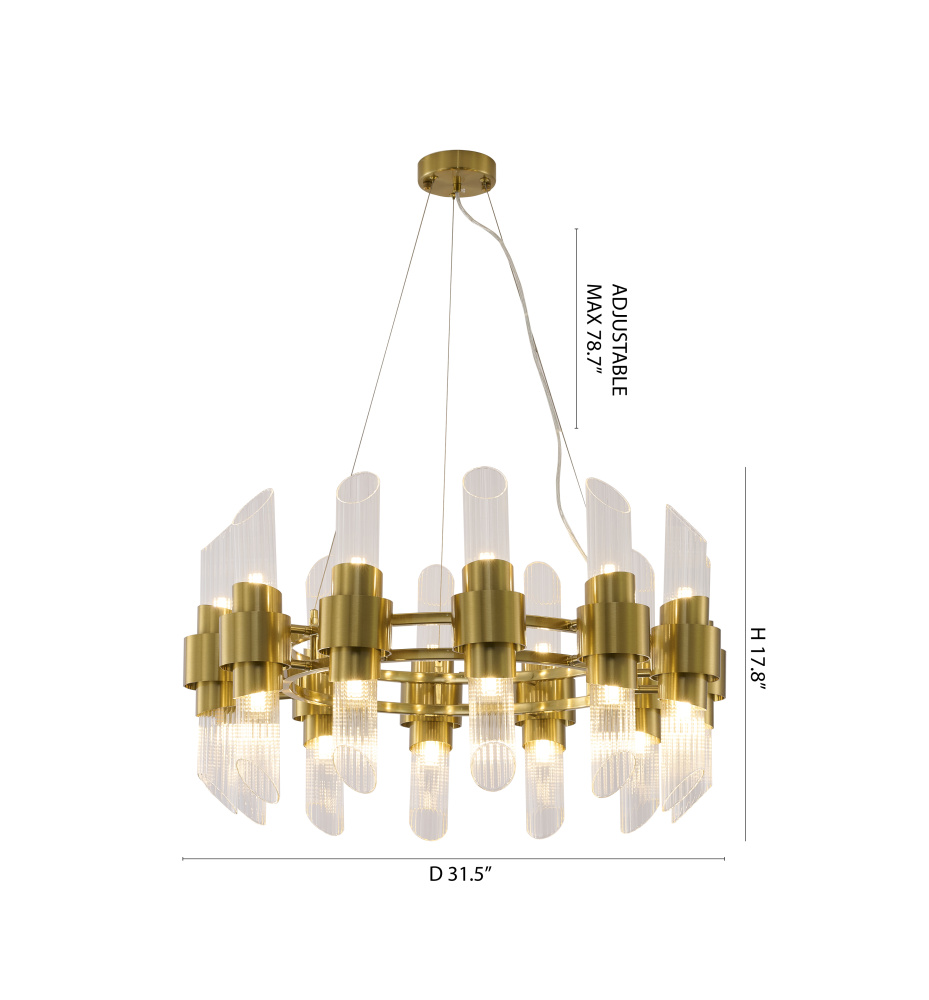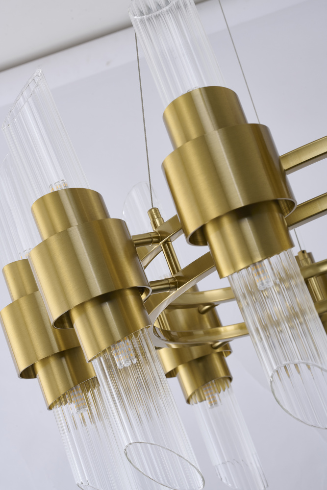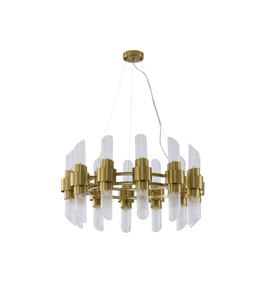 24-Light Satin Brass Iron Chandelier With Glass Shades