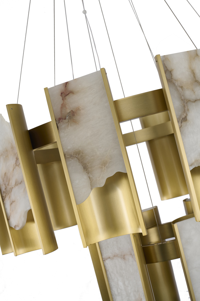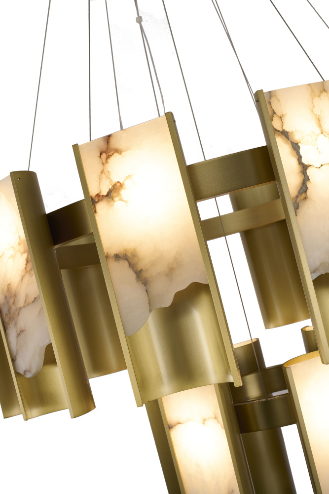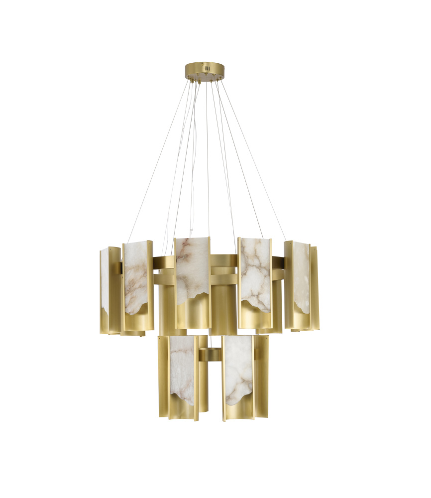 18-Light Satin Brass Aluminum LED Chandelier With White Alabaster Accents