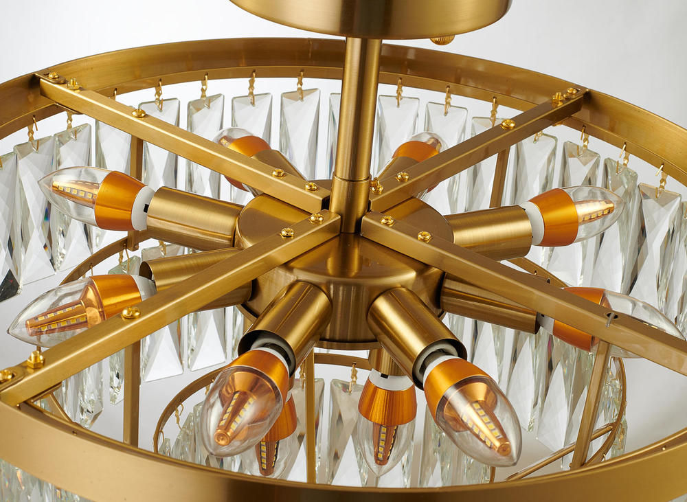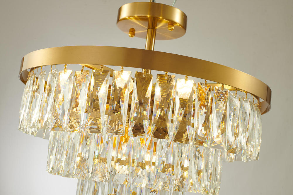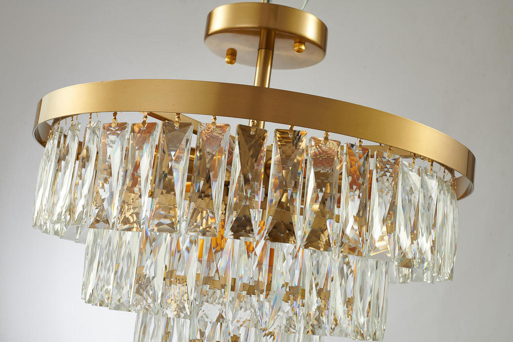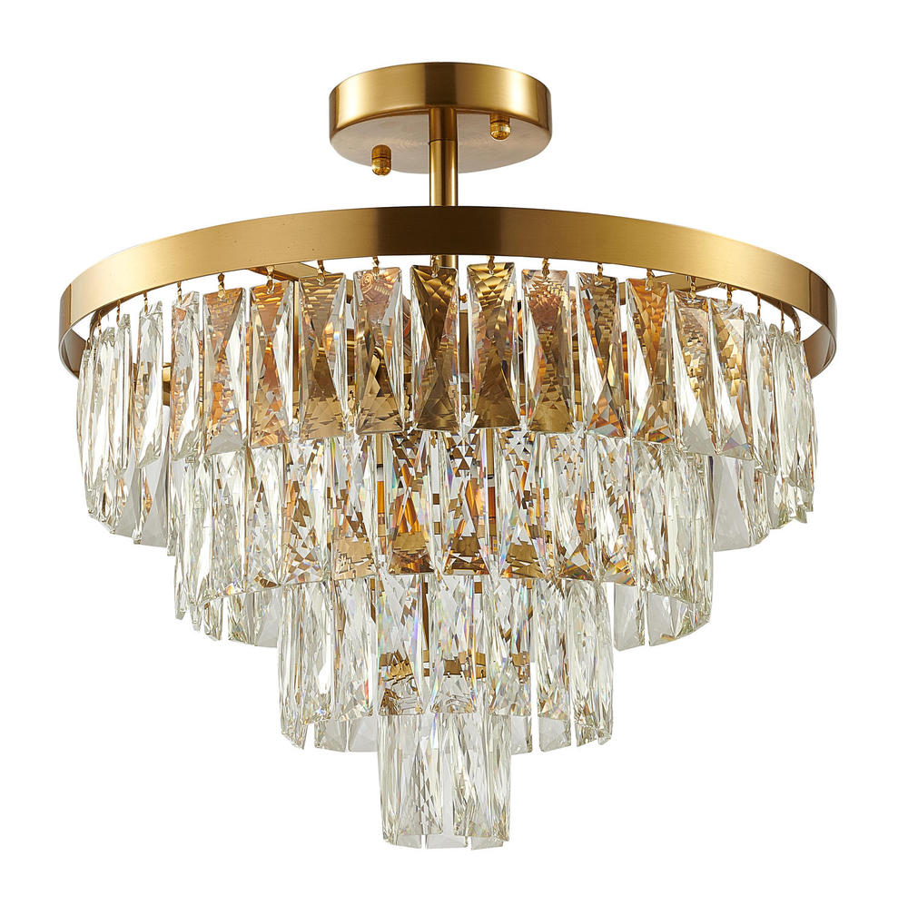 This exquisite semi flush mount is in a gold finish. The frame is made out of metal, and it comes with clear hanging crystal accents. You can create a timeless feel while using modern forms.