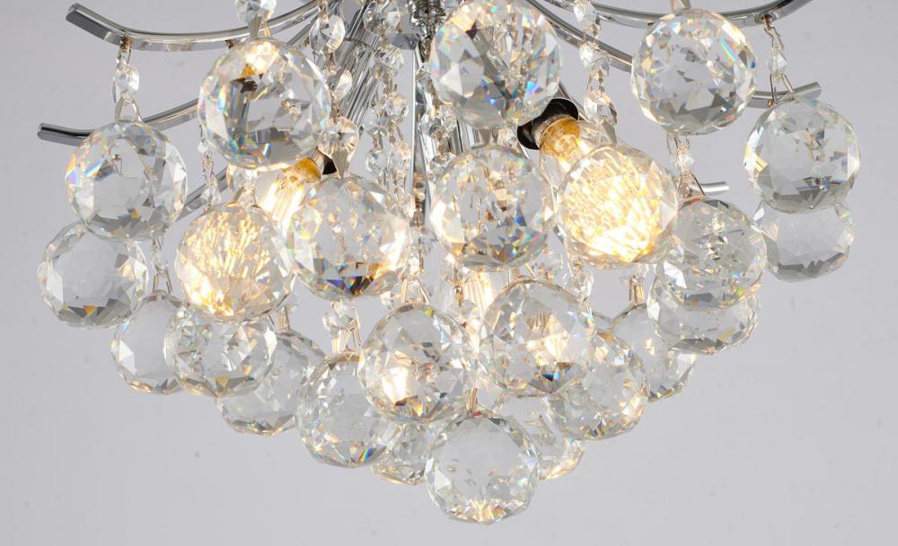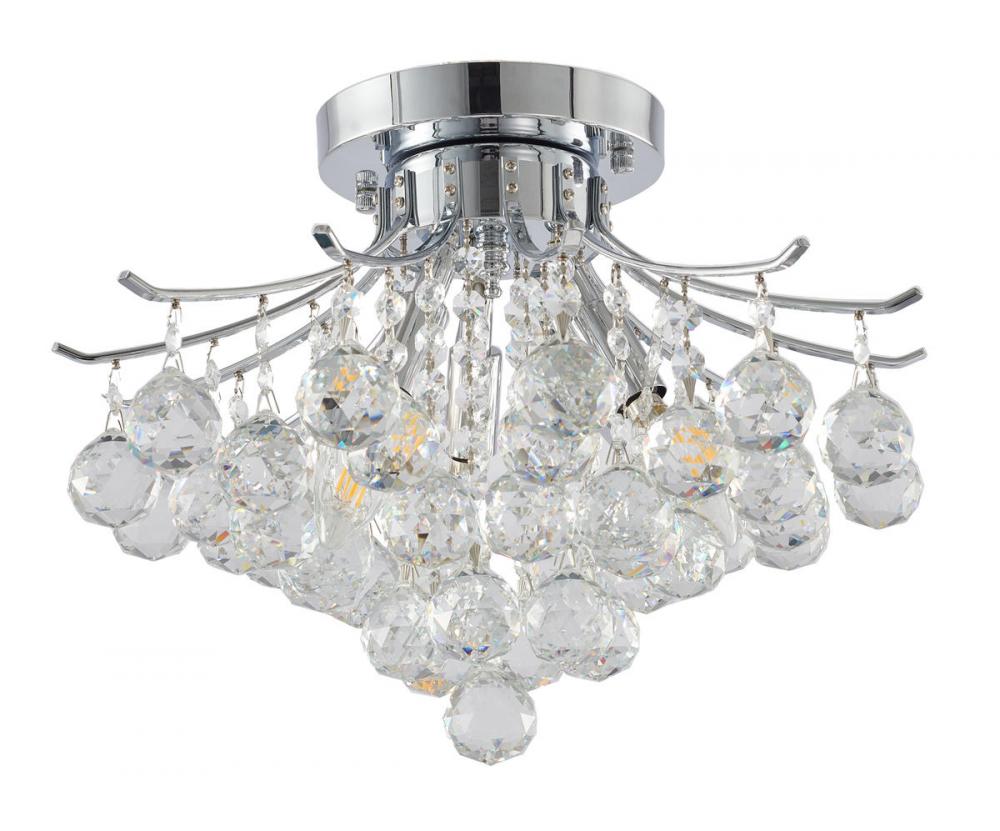This exquisite semi flush mount is in a chrome finish. The frame is made out of metal, and it comes with clear hanging crystals. It can be used in any rooms, entryways, and more.