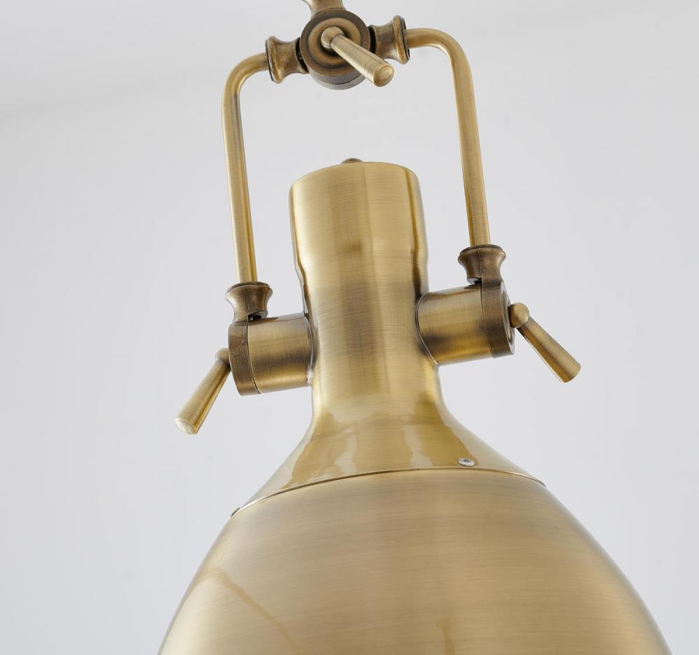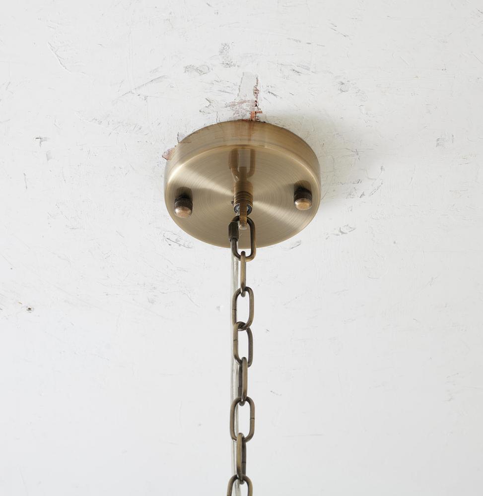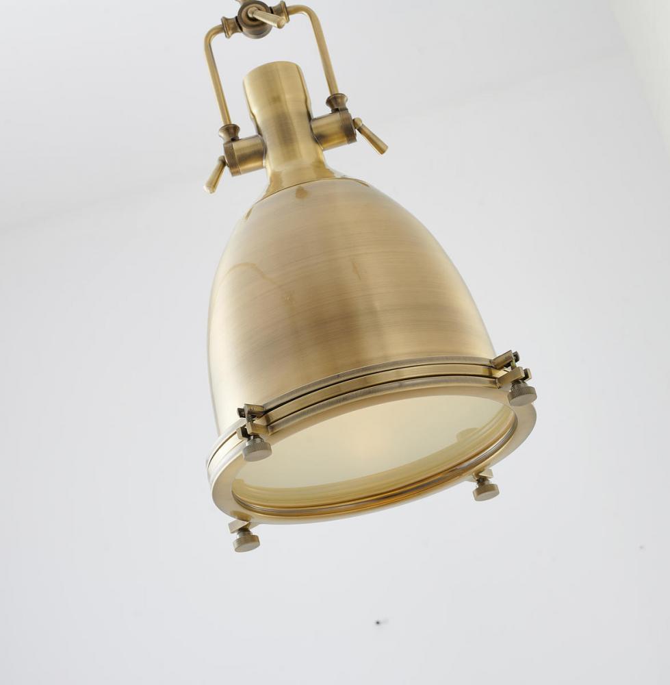 This exquisite single pendant lighting is in a brass finish. The frame is made out of metal, and it comes with a frosted glass shade. The adjustable chain link makes this fixture suitable for most ceiling heights.