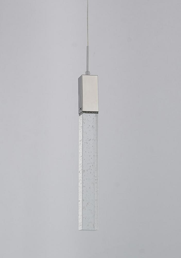 This exquisite single pendant lighting is in a chrome finish. The frame is made out of metal, and it comes with a hanging clear bubble block crystal. The length of cords can be adjustable and make this fixture suitable for most ceiling heights