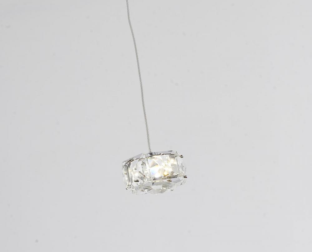 This modern LED single pendant light has a chrome stainless steel frame, and the LED bulb is integrated into the frame. It comes with a crystal accents in clear color, and the length of hanging cord can be adjustable.