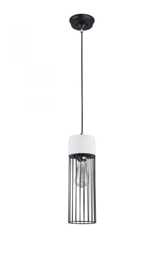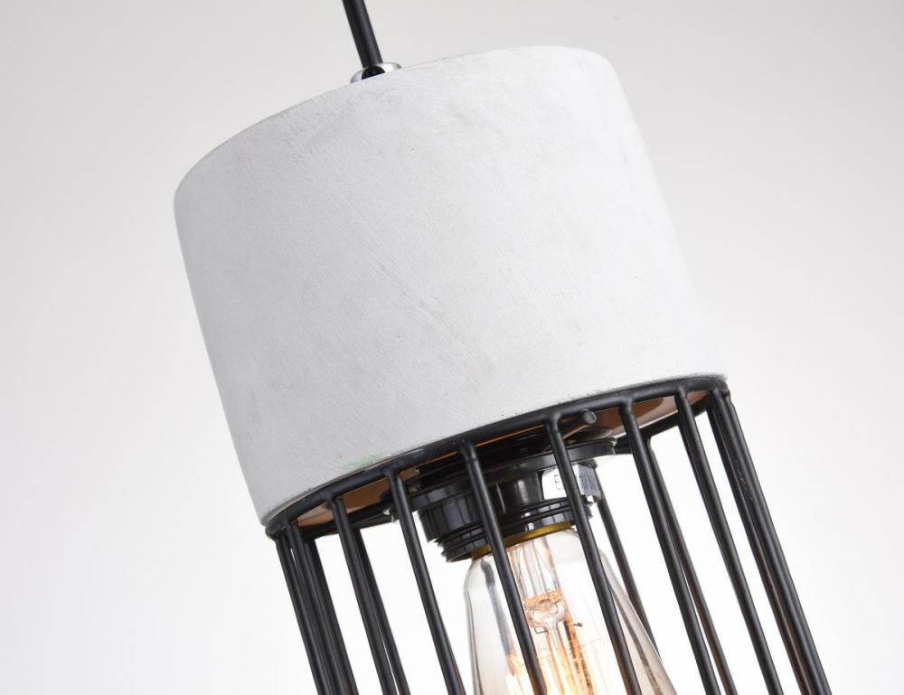 This fixture has a beautiful metal frame in grey cement frame with a black metal cage