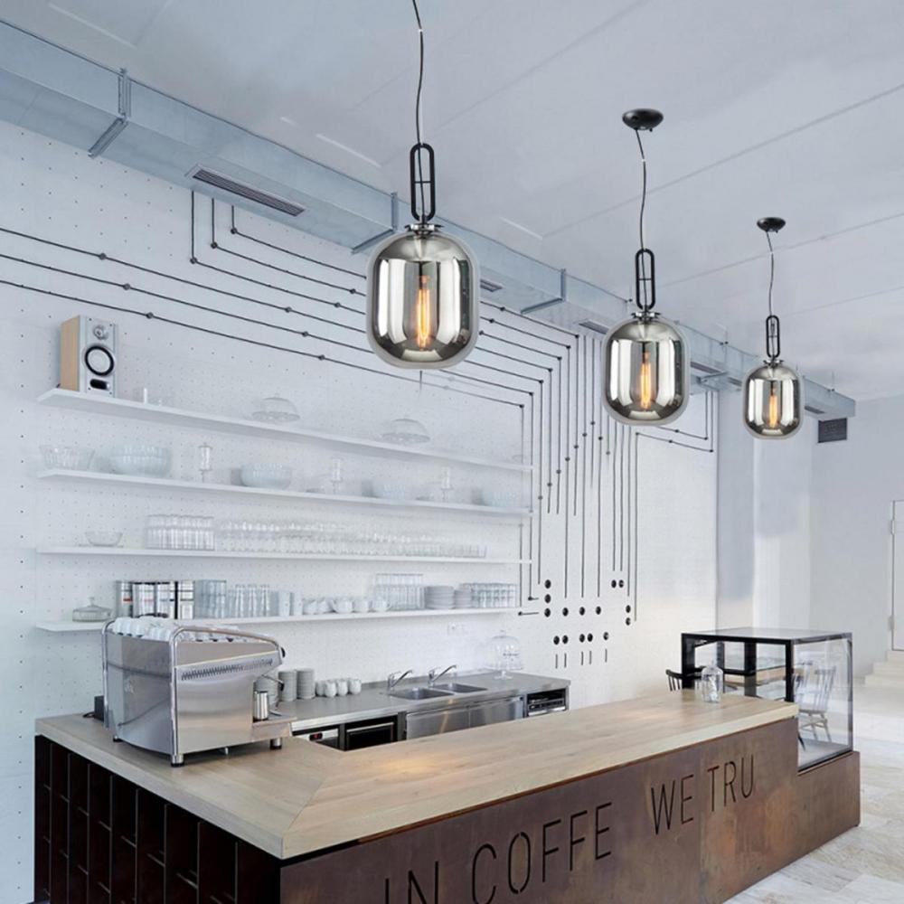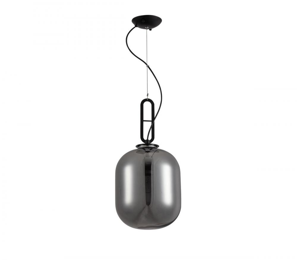 The unique single pendant lighting is in a matte black finish. It comes with a glass shade in a smoke color. This fixture can be used in any room.