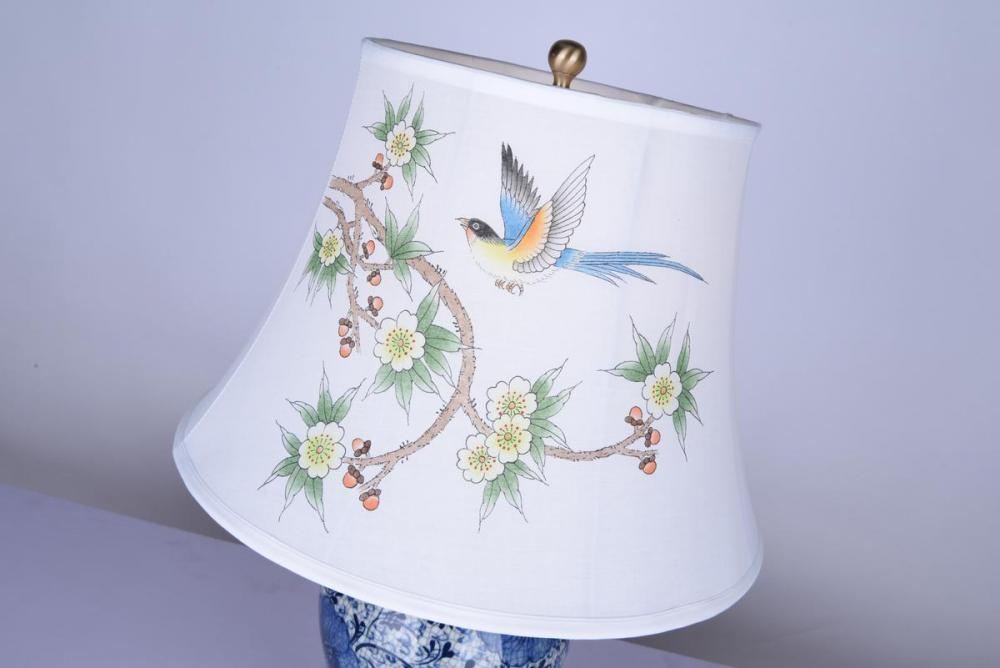 This beautiful Asian inspired table lamp comes with hand painted floral drawings