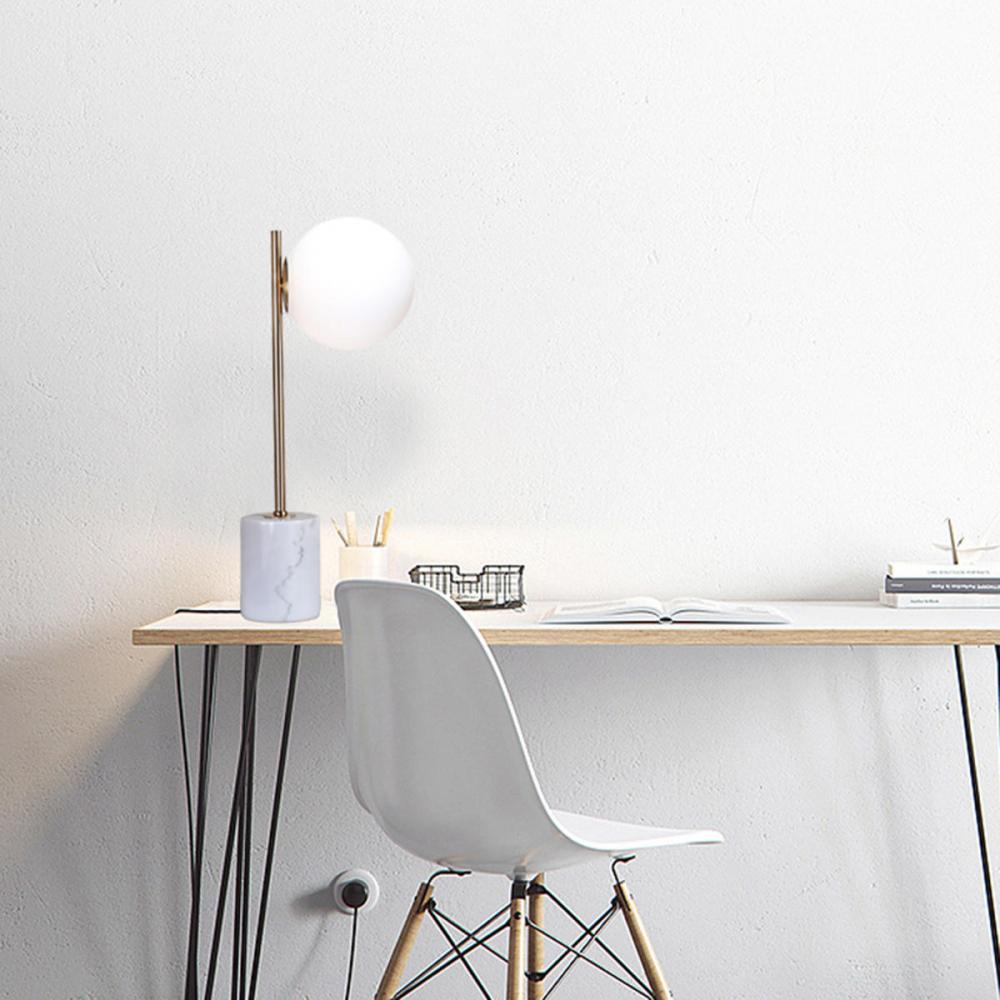 This exquisite is in a gold finish with a metal shade in gold color. The base is made out of marble in white color. It is great for chair side reading or general room illumination.