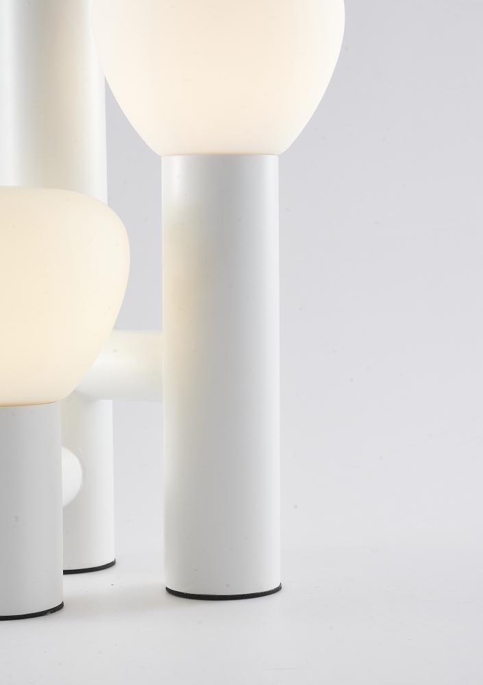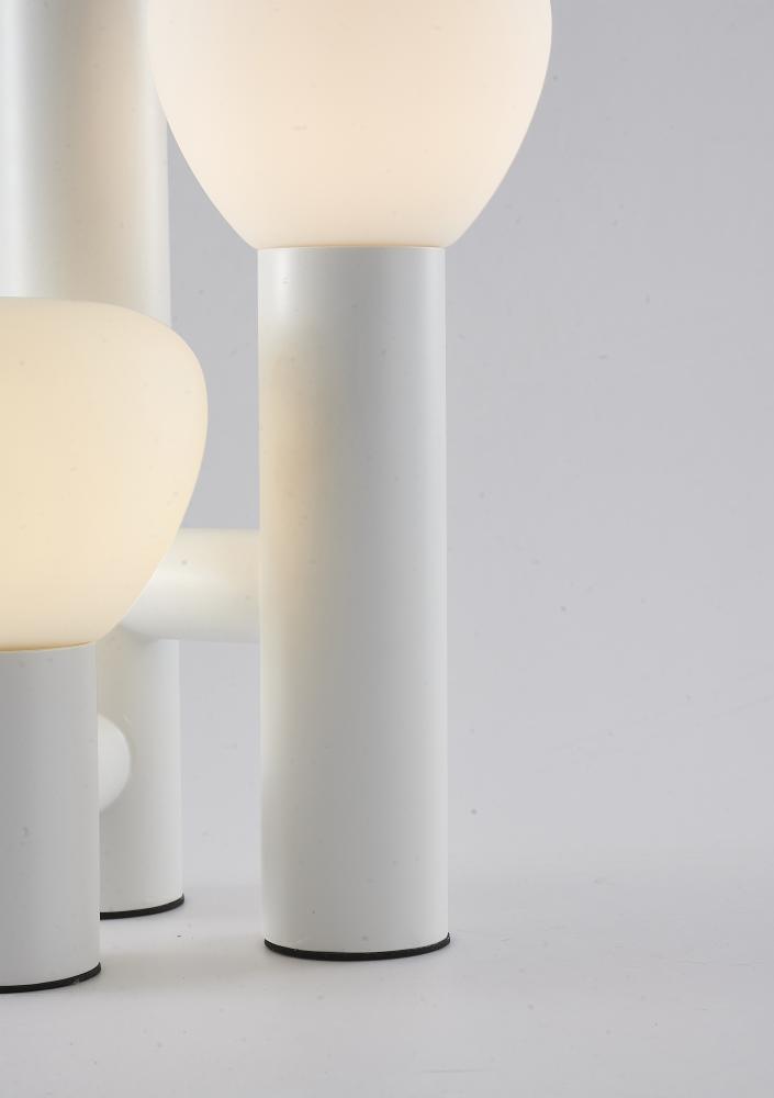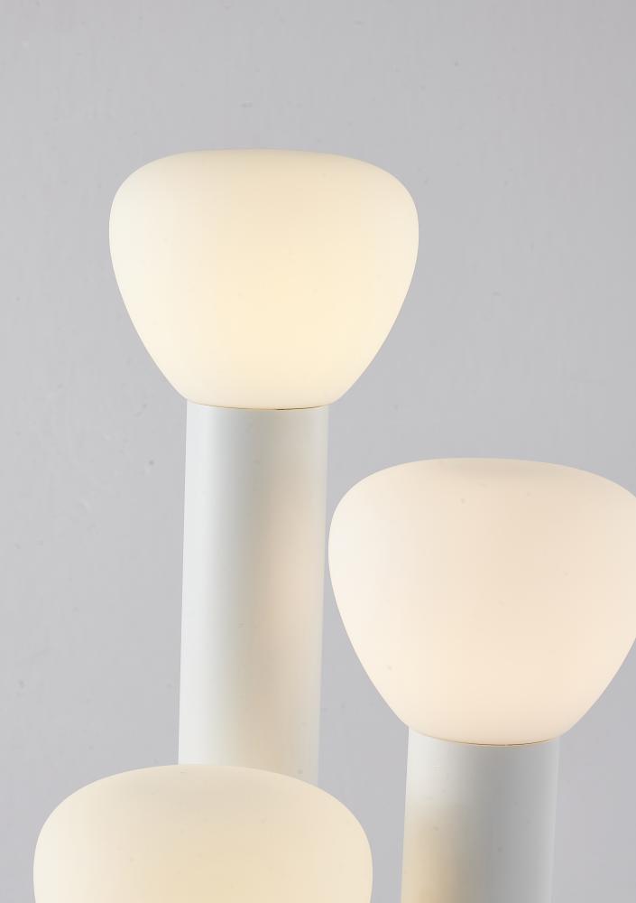 This table lamp is in a white finish. It comes with a white opal glass shade. This table lamp is a plug in lamp with on and off switch.