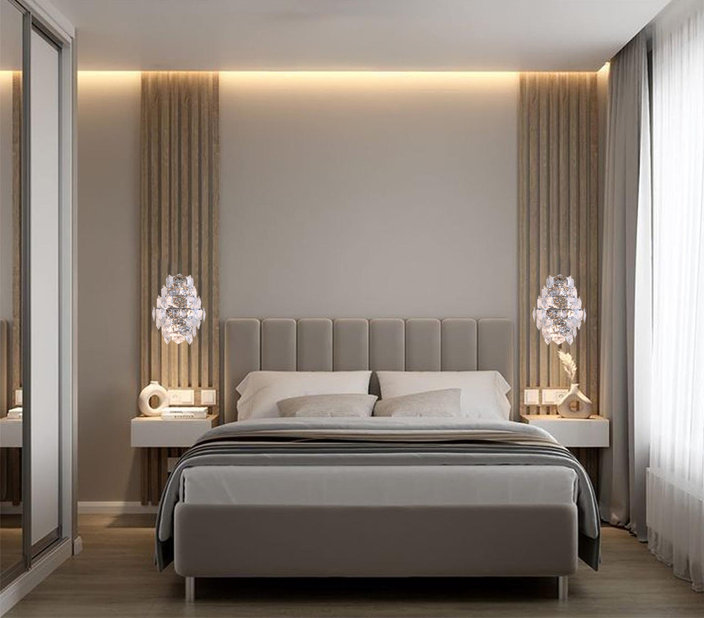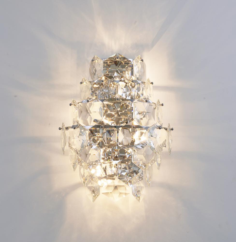 The materials for this wall sconce consists of stainless steel and crystal