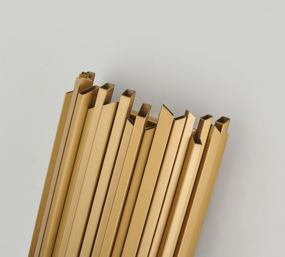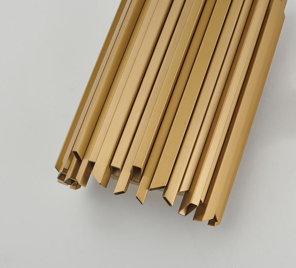 This modern wall sconce is in a gold finish. The frame is made out of stainless steel, two GU10 bulbs (sold separately) can provide enough illumination in any rooms. This wall sconce can be used in modern vanities, hallways, and more, and it can be mounted horizontally or vertically.