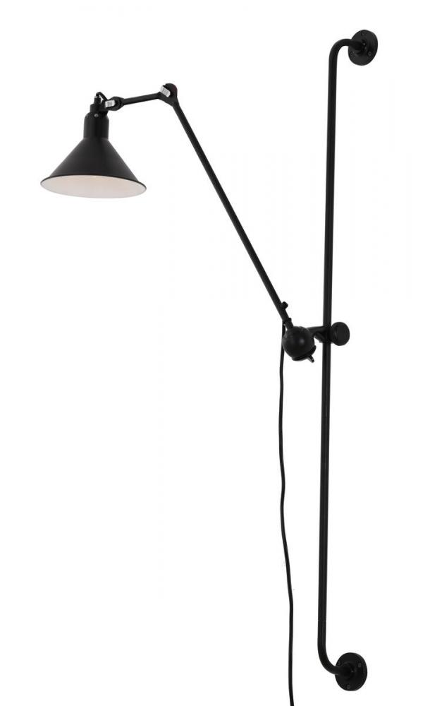 This unique wall sconce is in a black finish. The frame is made out of metal, and it comes with a matte black metal shade. It also has a plug in ON/OFF switch. It can be used in any rooms, entryways, and more