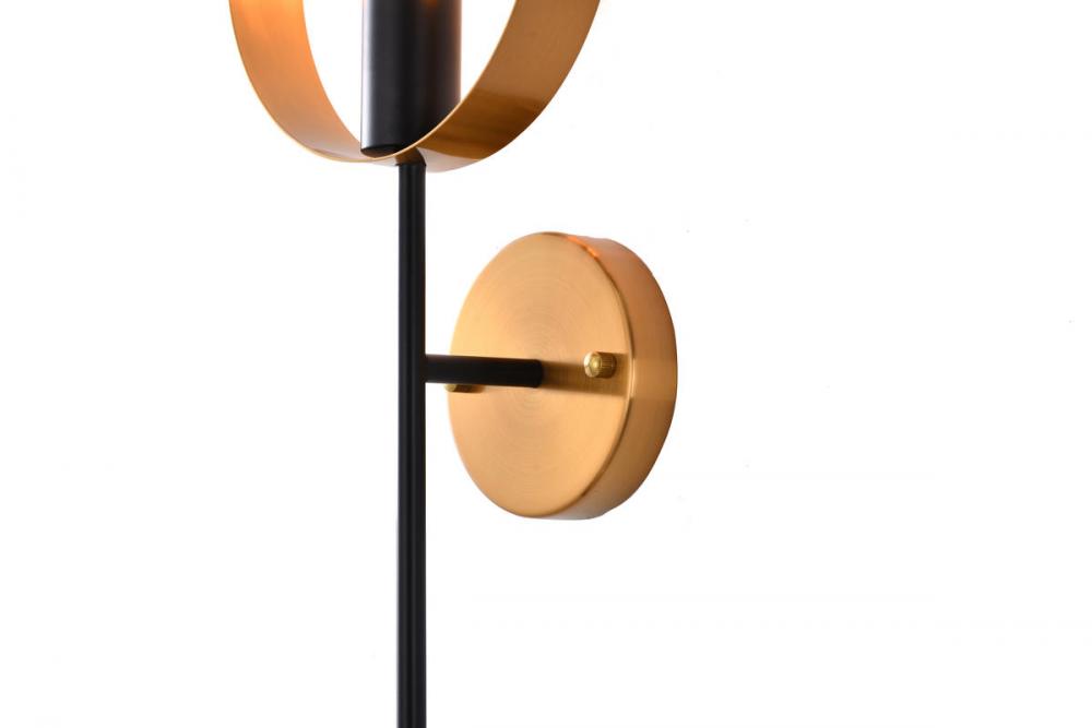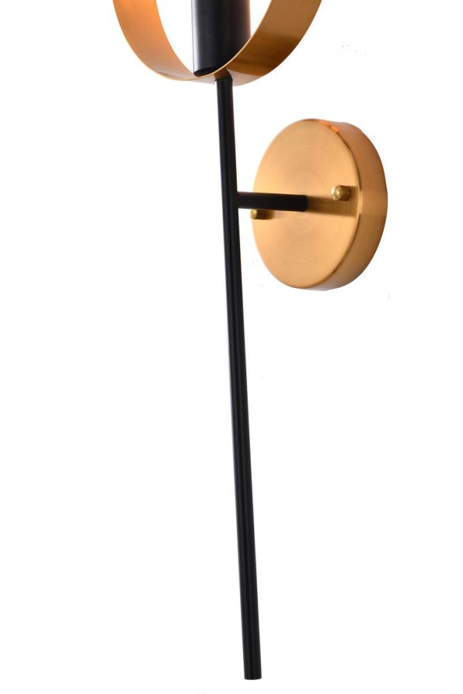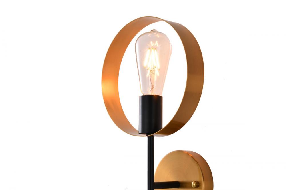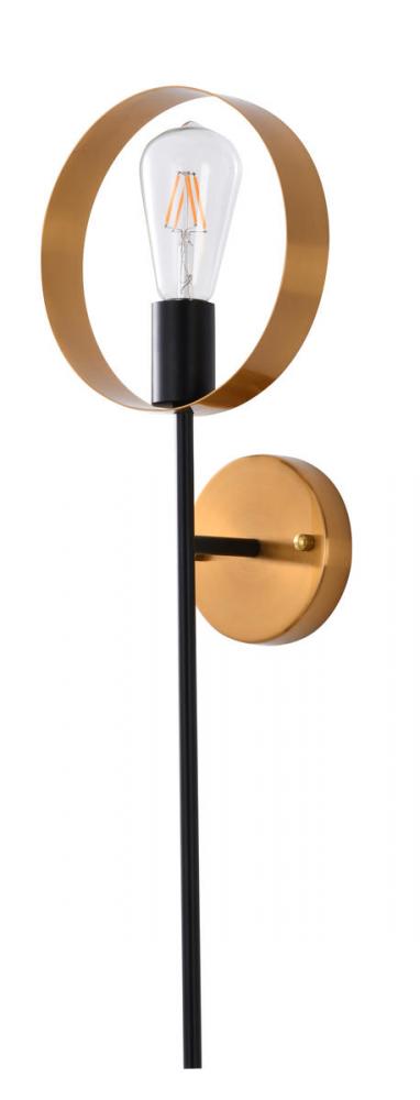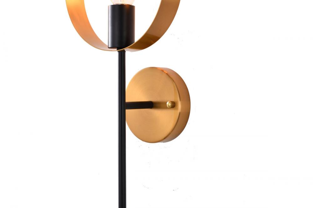 This exquisite wall sconce is in black and golden bronze finish. The frame is made out of metal, it contains a black arm and a golden bronze ring on the top. This wall sconce can be used in any rooms, entryways, and more.