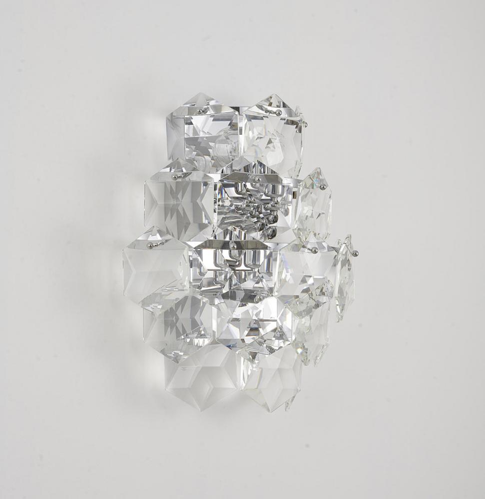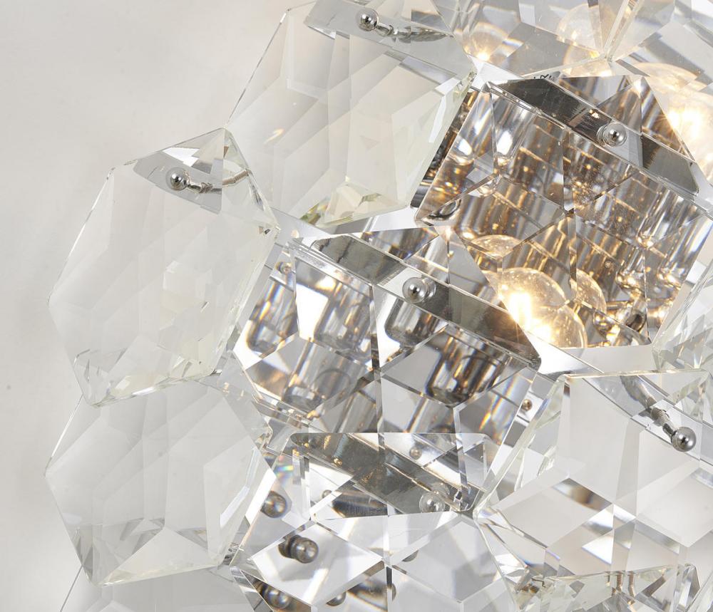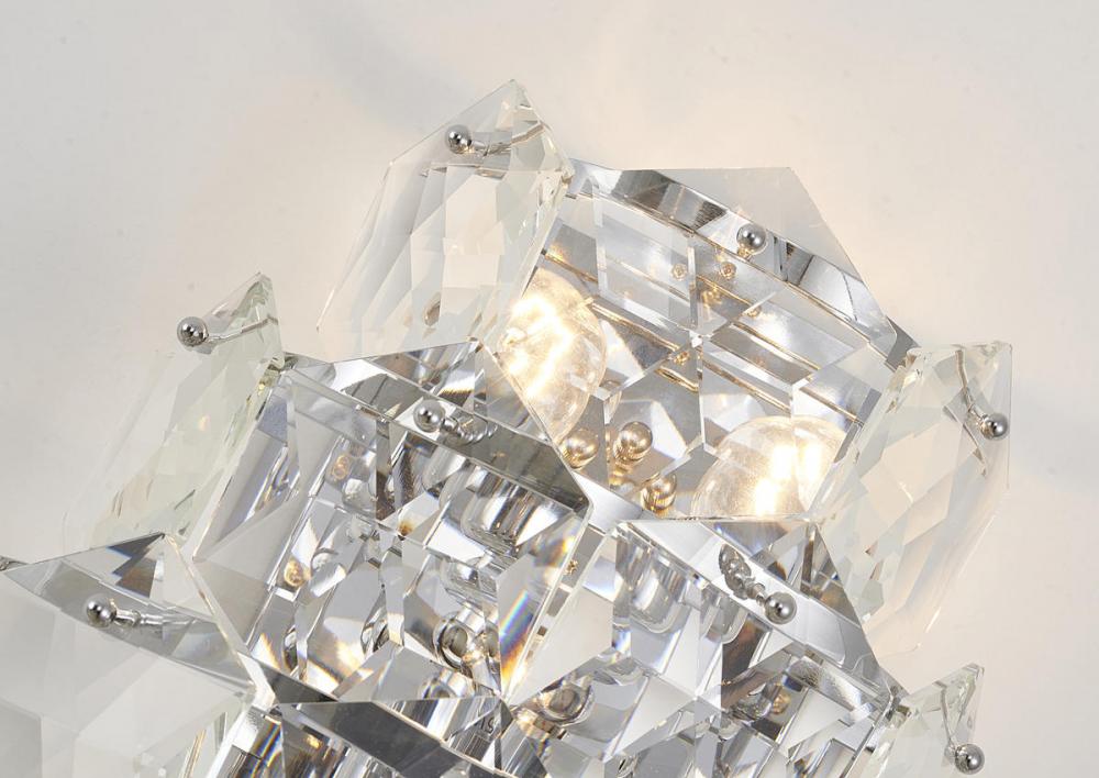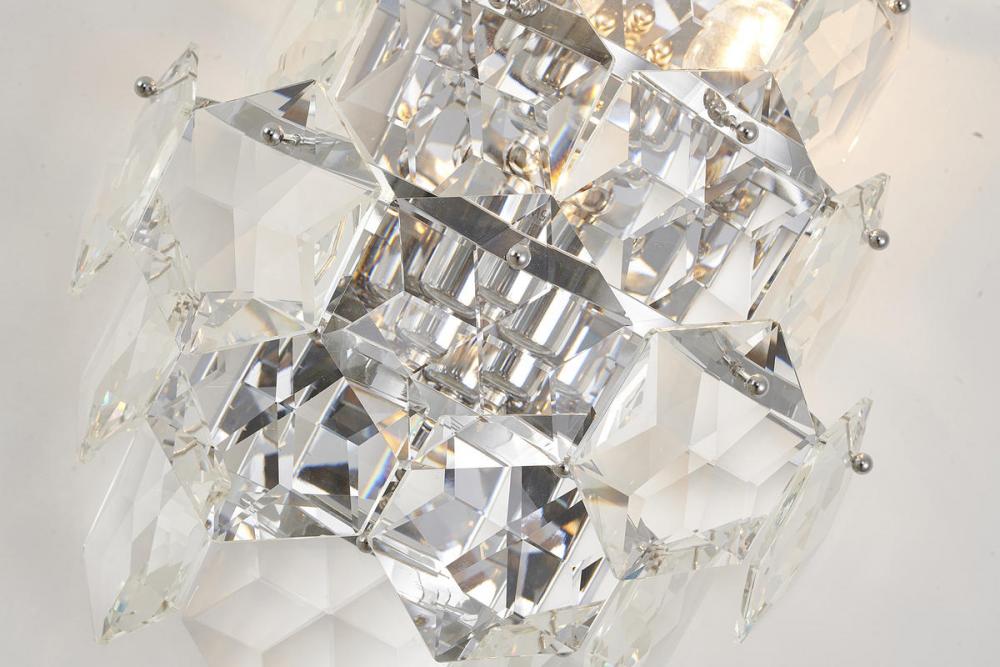 This exquisite wall sconce is in a chrome finish. The frame is made out of stainless steel, and it comes with clear crystal accents. This wall sconce can be used in any rooms, entryways, and more, and it can be mounted horizontally or vertically.