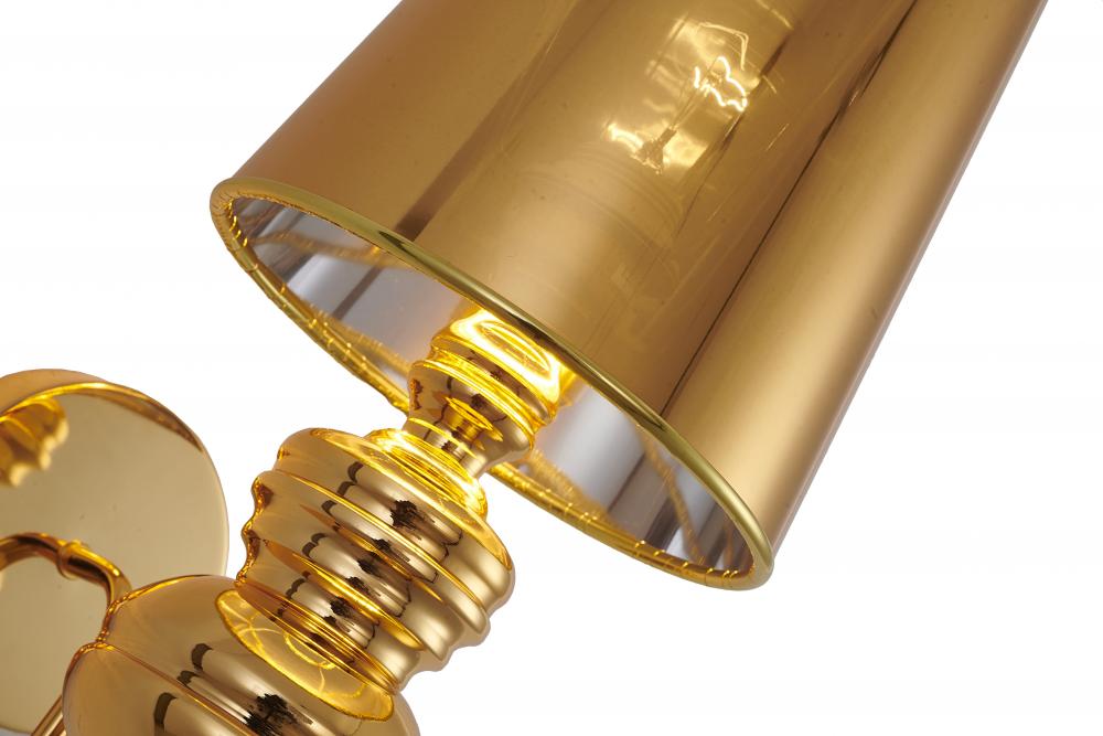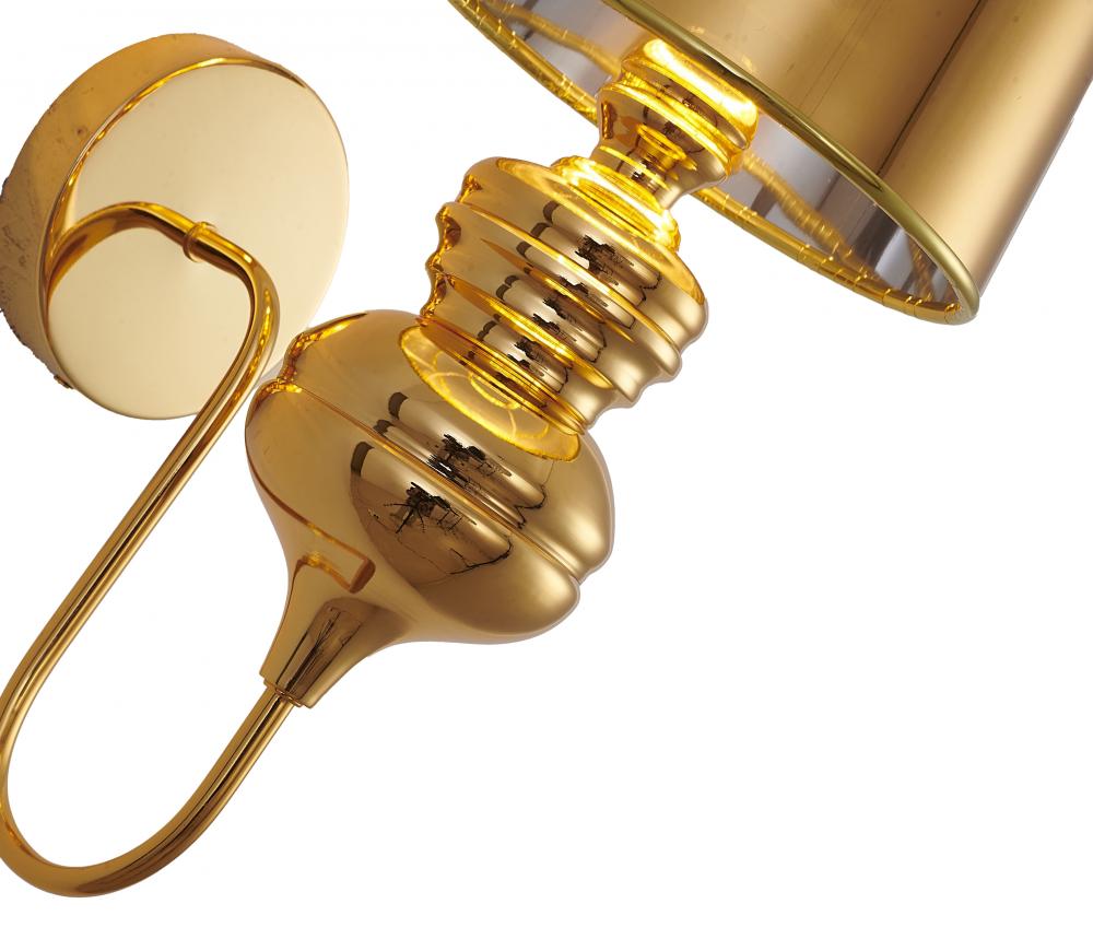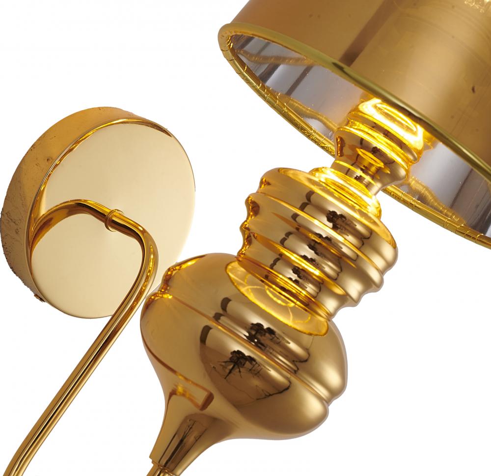 This wall sconce is in a polished gold finish