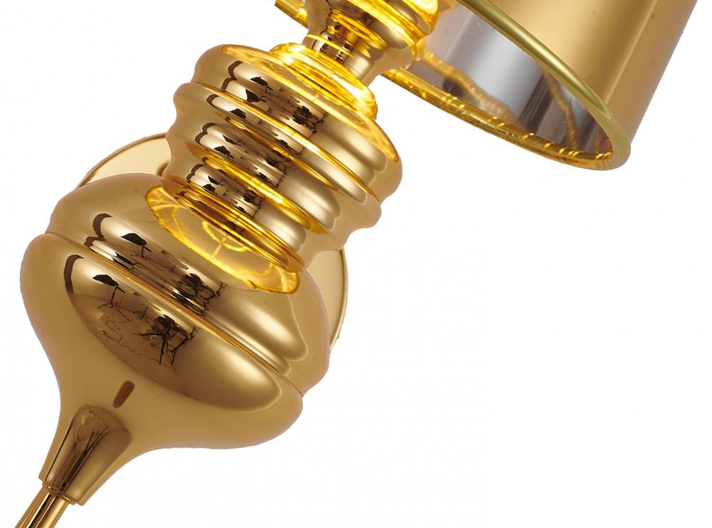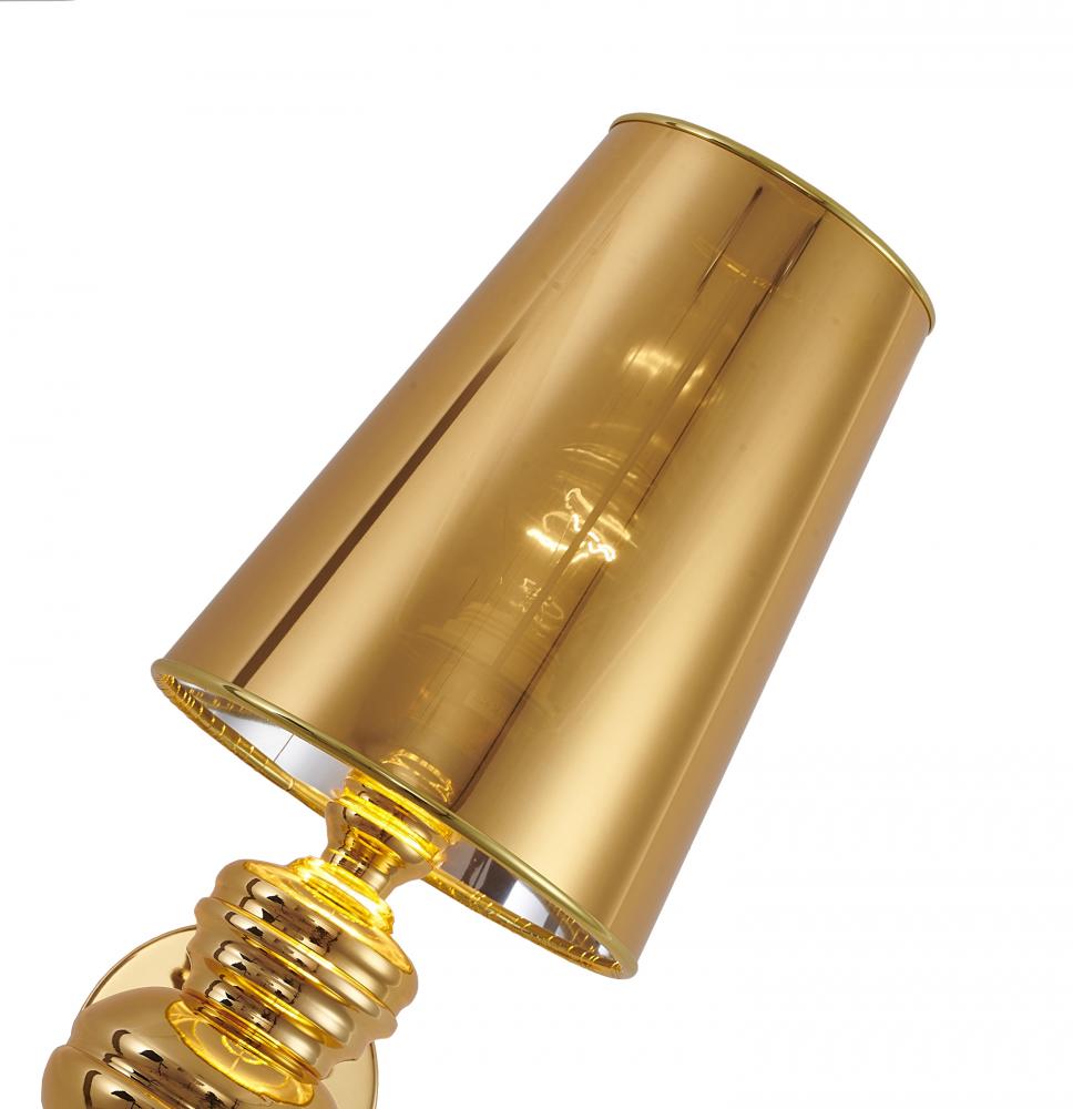It comes with a polished gold steel shade