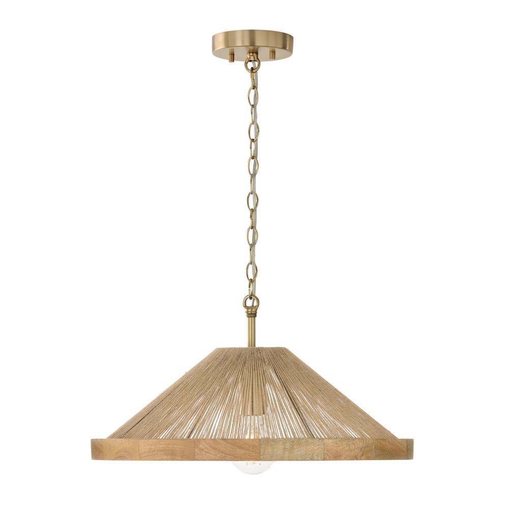 1-Light Dual Mount Pendant in Matte Brass with Mango Wood and Handwrapped Natural Jute Rope String by Capital Canada