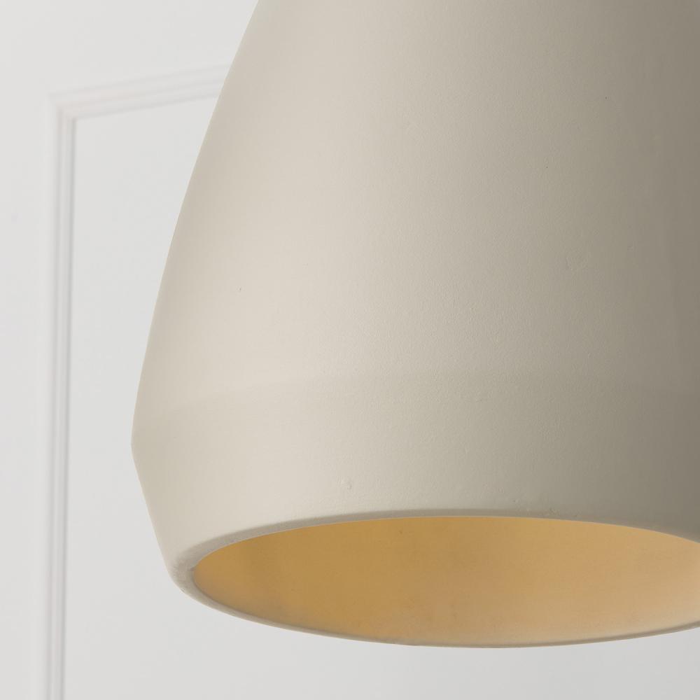 Handcrafted of terracotta, the Della Large Pendant delivers organic appeal with natural character — no two pieces are quite the same. Inspired by earth tones and painted by hand, the soft Ivory finish brings a light aesthetic to the sculpted silhouette, grounded with Matte Black metal details.