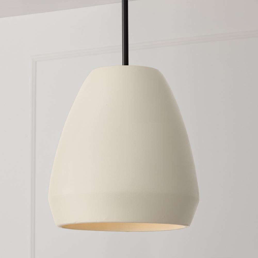 1-Light Handcrafted Terracotta Pendant in Ivory and Matte Black by Capital Canada