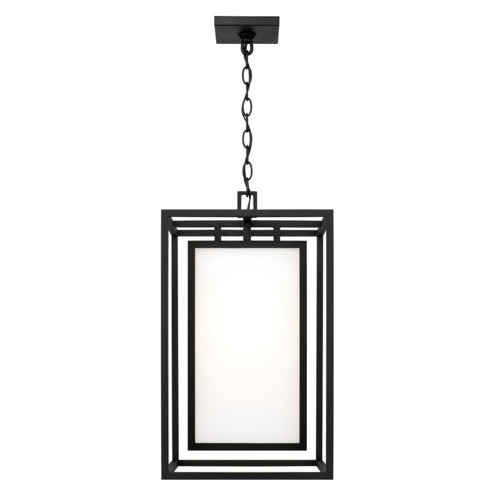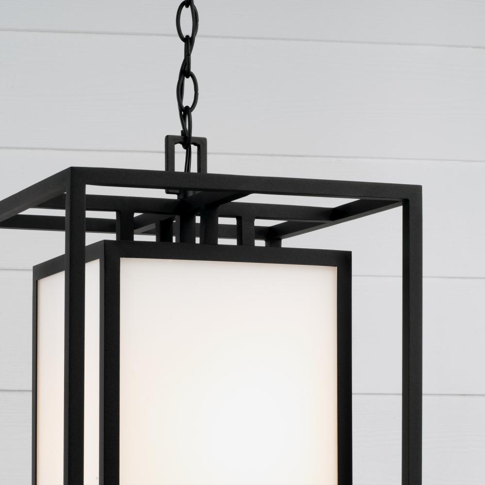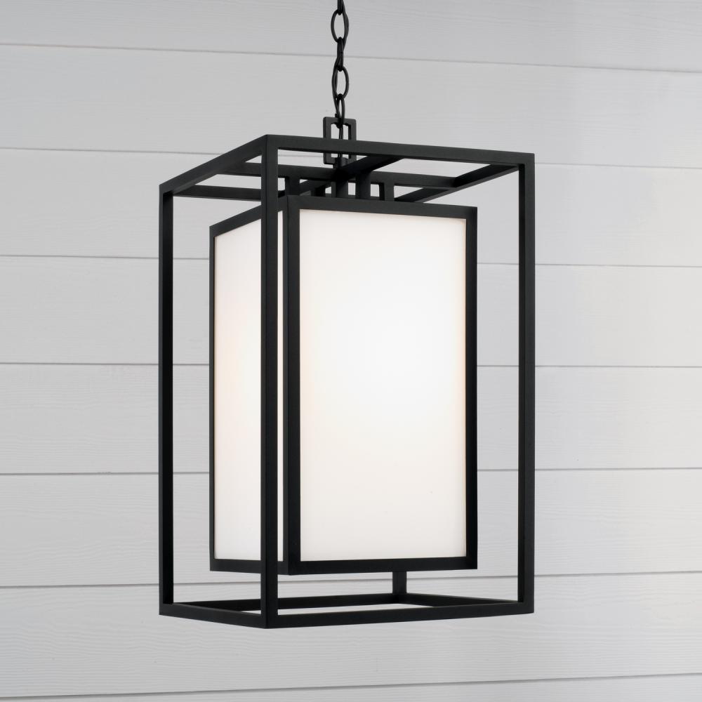 1-Light Outdoor Modern Square Rectangle Hanging Lantern in Black with Soft White Glass by Capital Canada