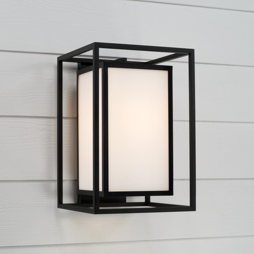 1-Light Outdoor Modern Square Rectangle Wall Lantern in Black with Soft White Glass by Capital Canada