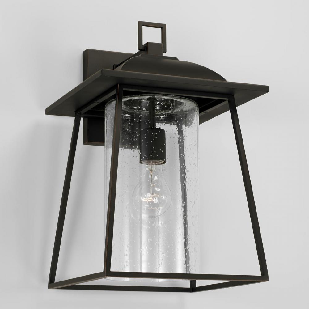 The contrast of a detailed, beveled dome and a tapered, minimalist frame in the Durham Collection is a masterful mix of modern and traditional. The simple silhouette accentuates the hurricane-style seeded glass shade. These fixtures are part of our Rain or Shine Collection and are backed by our five-year warranty.