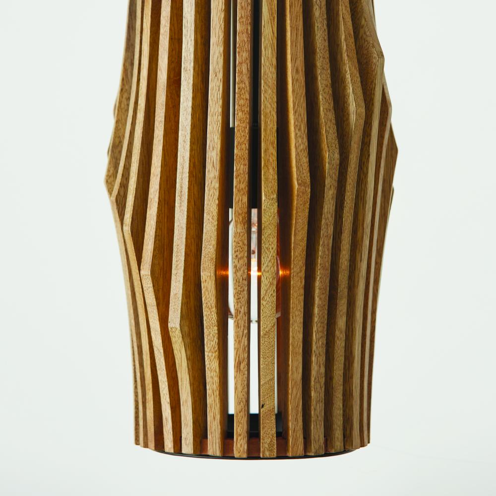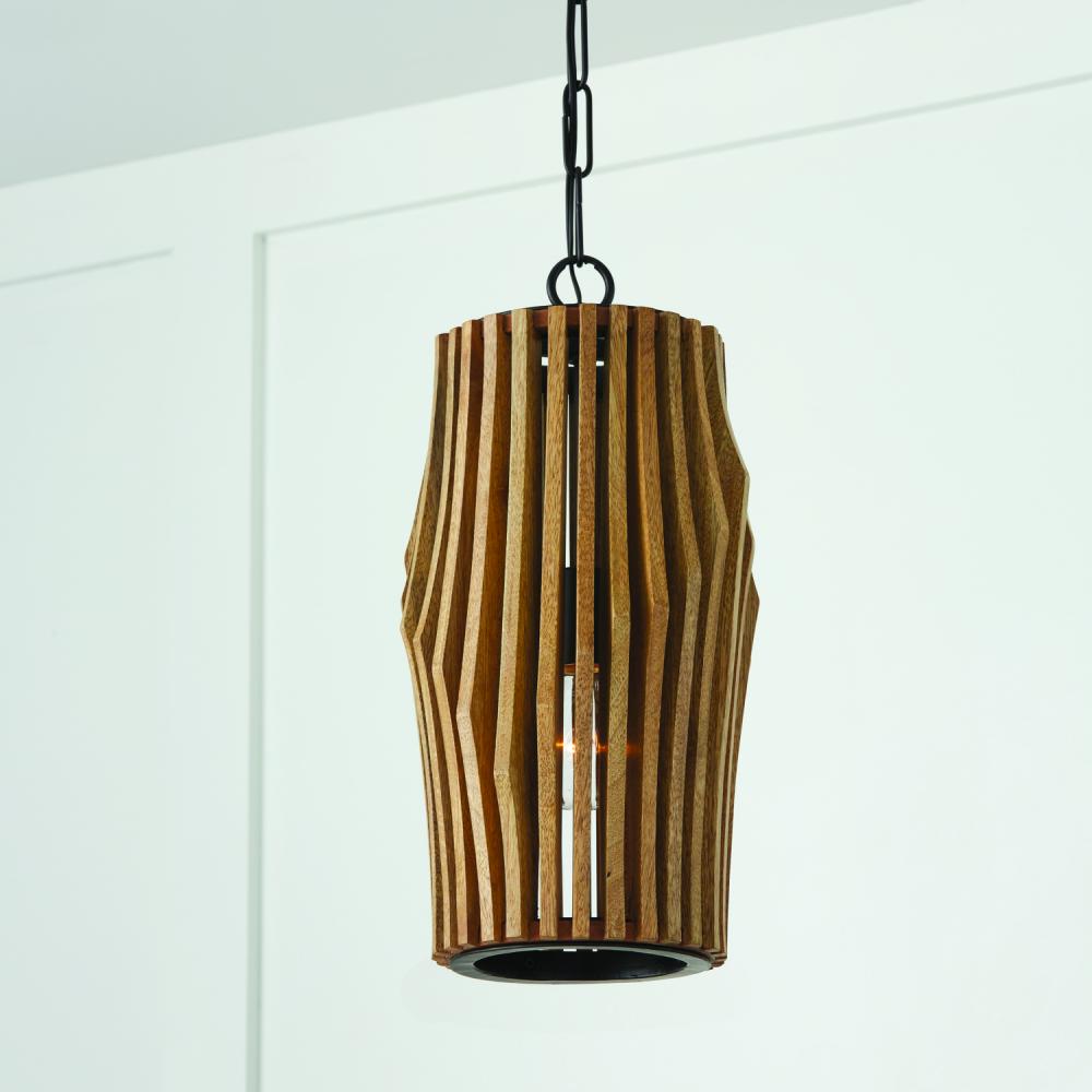 8.75"W x 17.25"H 1-Light Pendant Handcrafted of Light-Stained Wood and Matte Black Frame