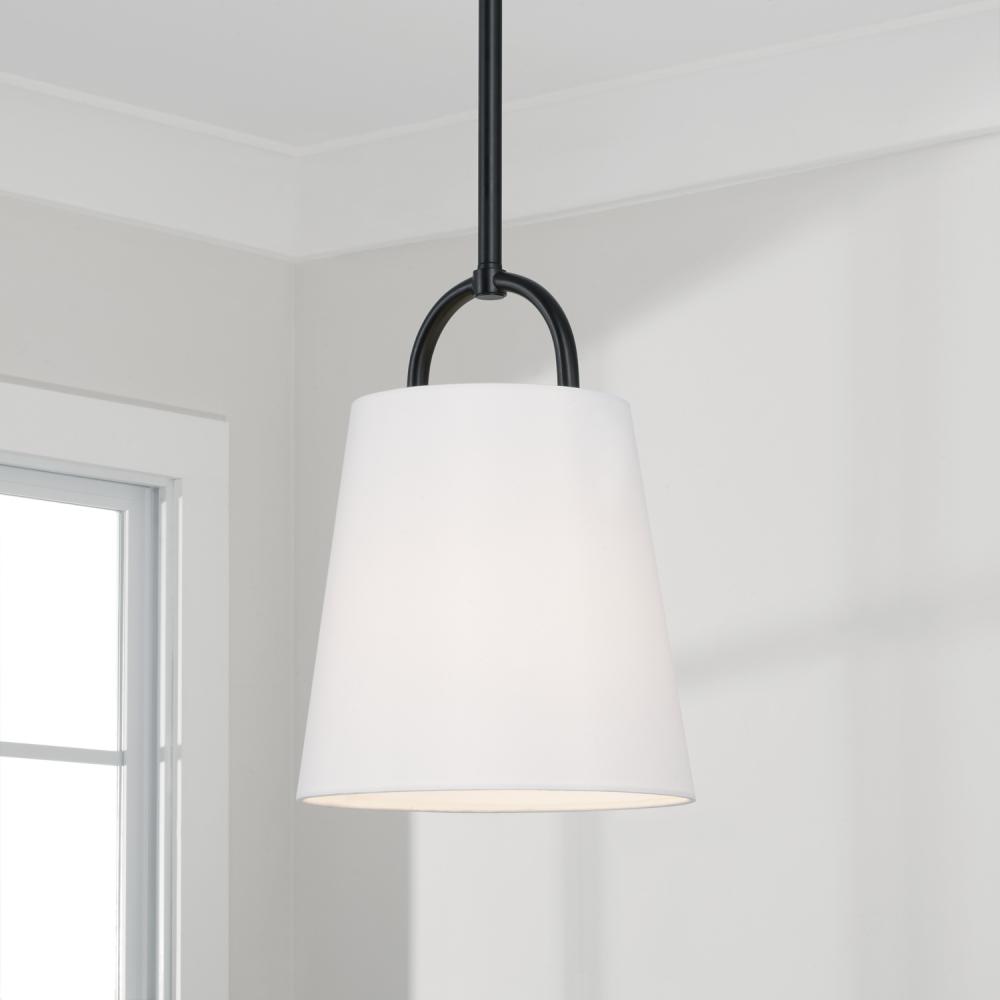 10"W x 13.75"H 1-Light Pendant in Matte Black with White Fabric Shade