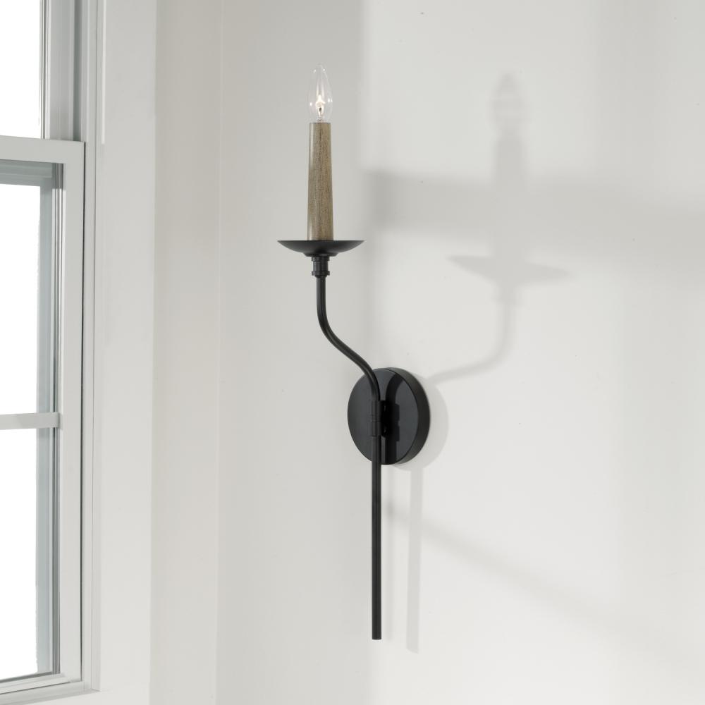 1-Light Sconce in Matte Black with Interchangeable Faux Wood or Matte Black Candle Sleeve by Capital Canada