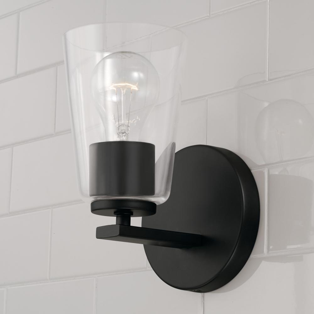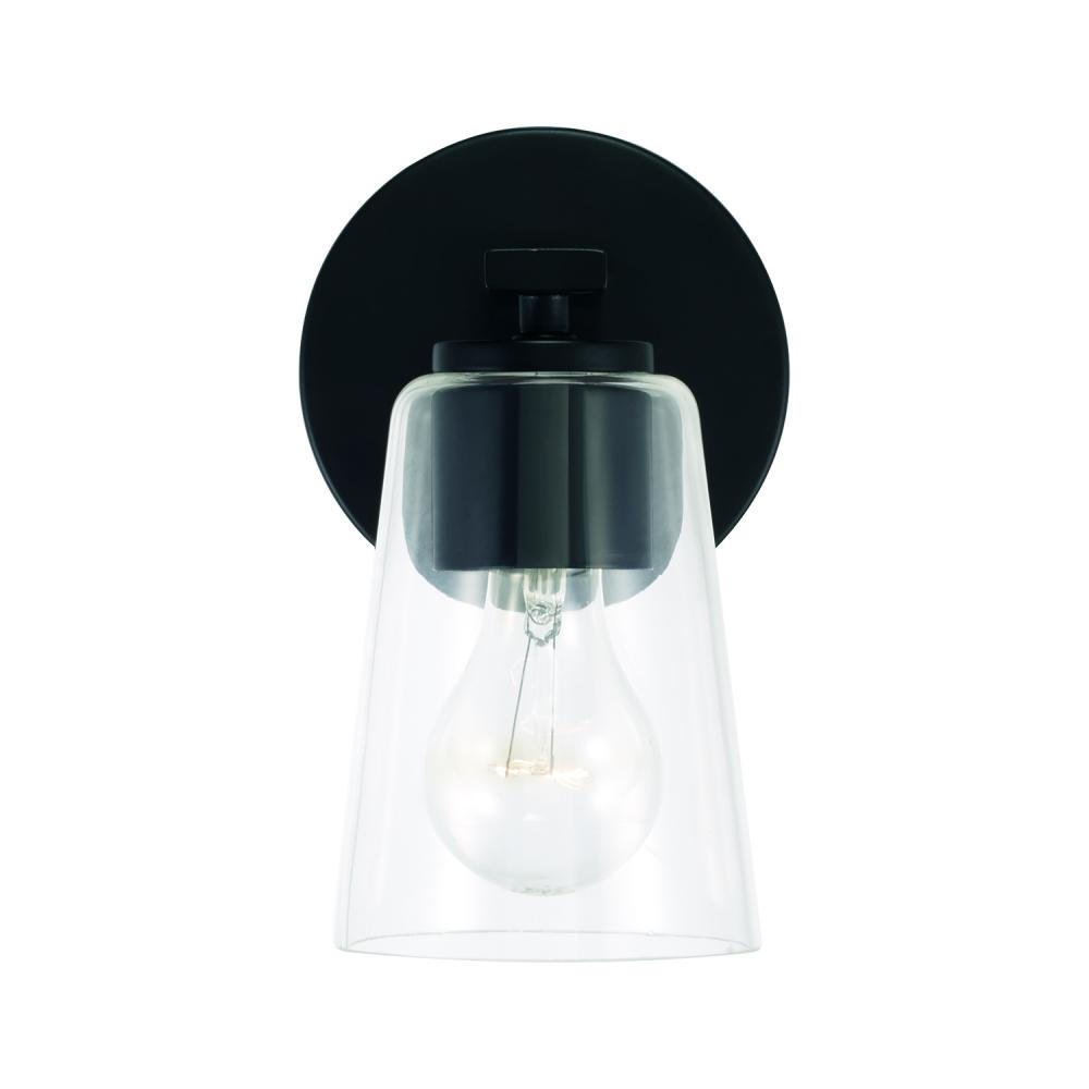 5"W x 8.5"H 1-Light Sconce in Matte Black with Clear Glass