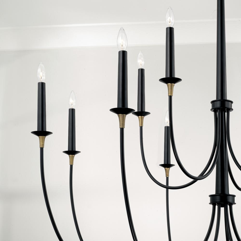 Sweeping curves and a classic shape dials up the drama with the Amara Grand Chandelier. The wrapped detail in a brass tone adds a layer of unexpected dimension to the familiar form finished in Matte Black.