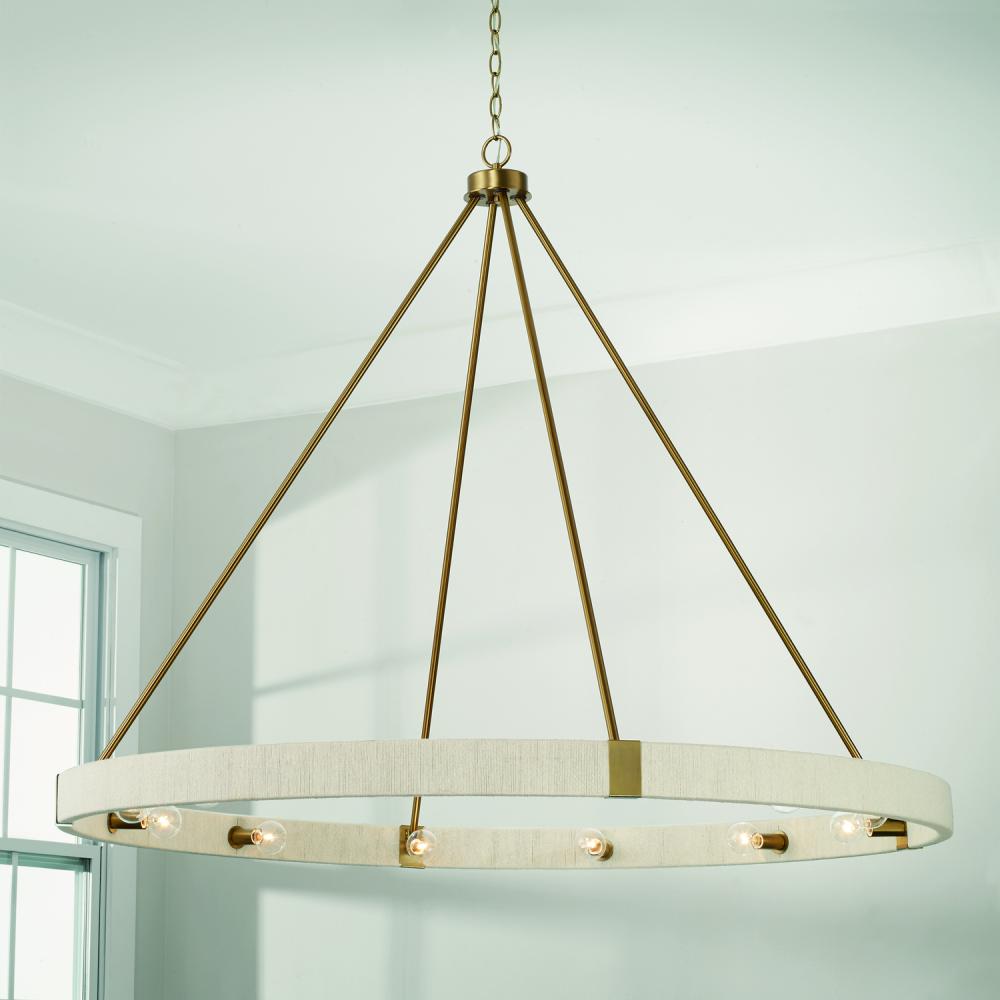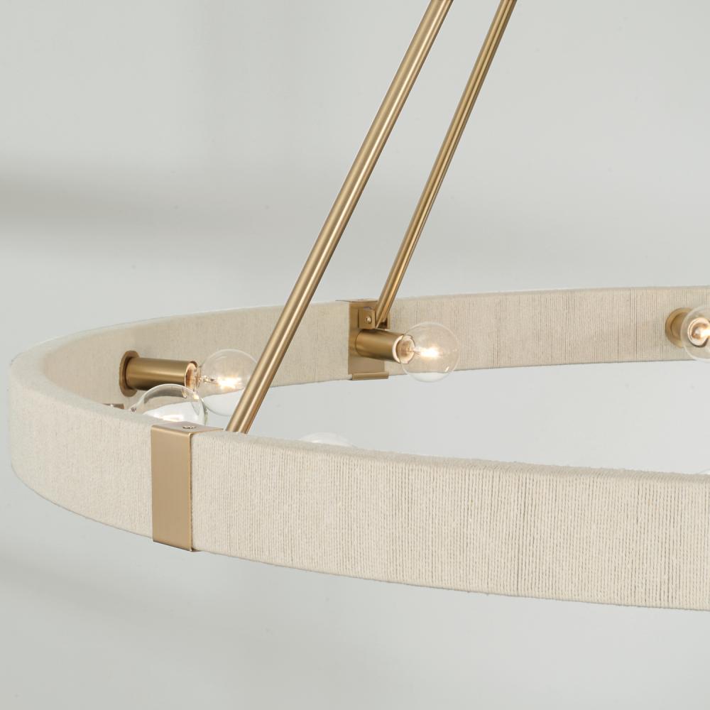 47.75"W x 40"H 12-Light Chandelier in Matte Brass with Bleached Natural Rope