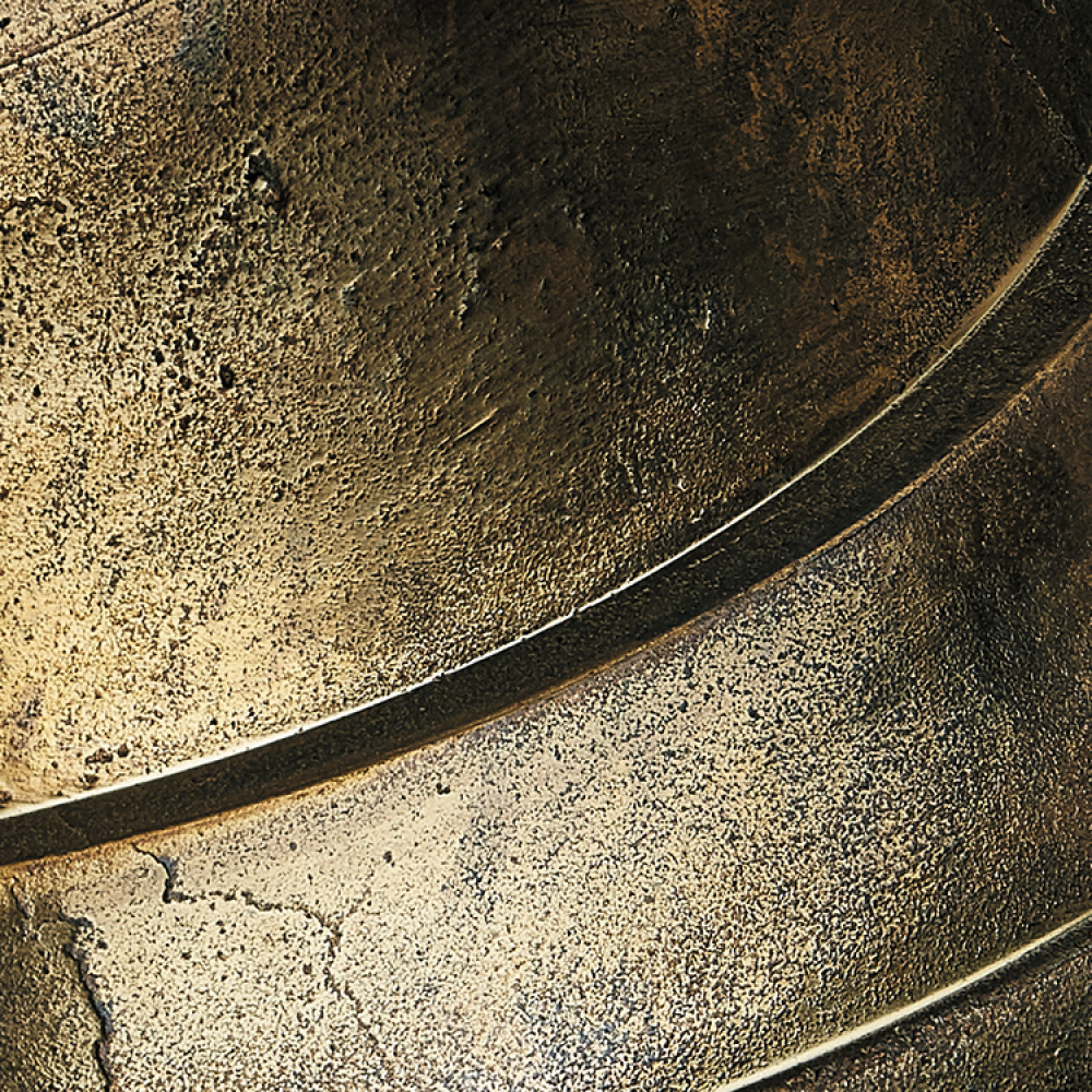 FINISH: A medium-dark muted brass with yellow undertones and copper metallic highlights. Intentionally distressed — no two pieces are exactly the same.