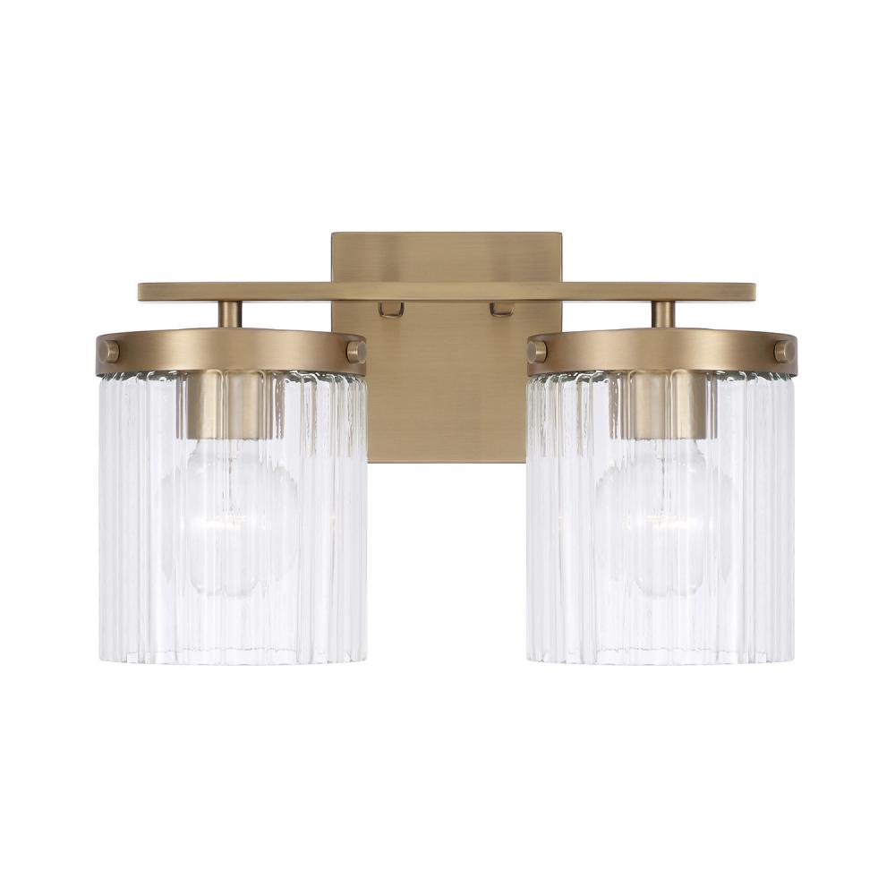 2-Light Vanity in Aged Brass with Clear Beveled Fluted Glass by Capital Canada
