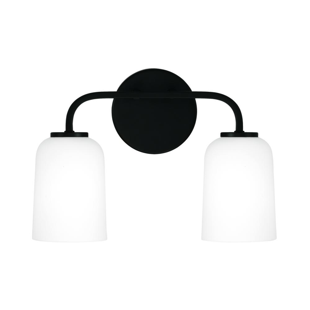 13.75"W x 9.75"H 2-Light Vanity in Matte Black with Soft White Glass