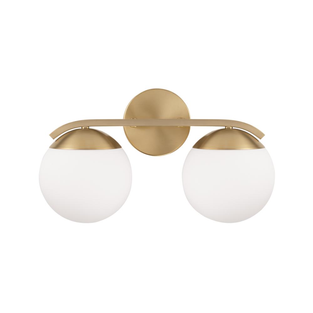 Crafted with circular forms and soft white glass, the Oliver 2-Light Vanity brings effortless glamour to any powder room. The curved arms and accents evoke elegant style, while the Matte Brass finish creates a sophisticated shimmer.