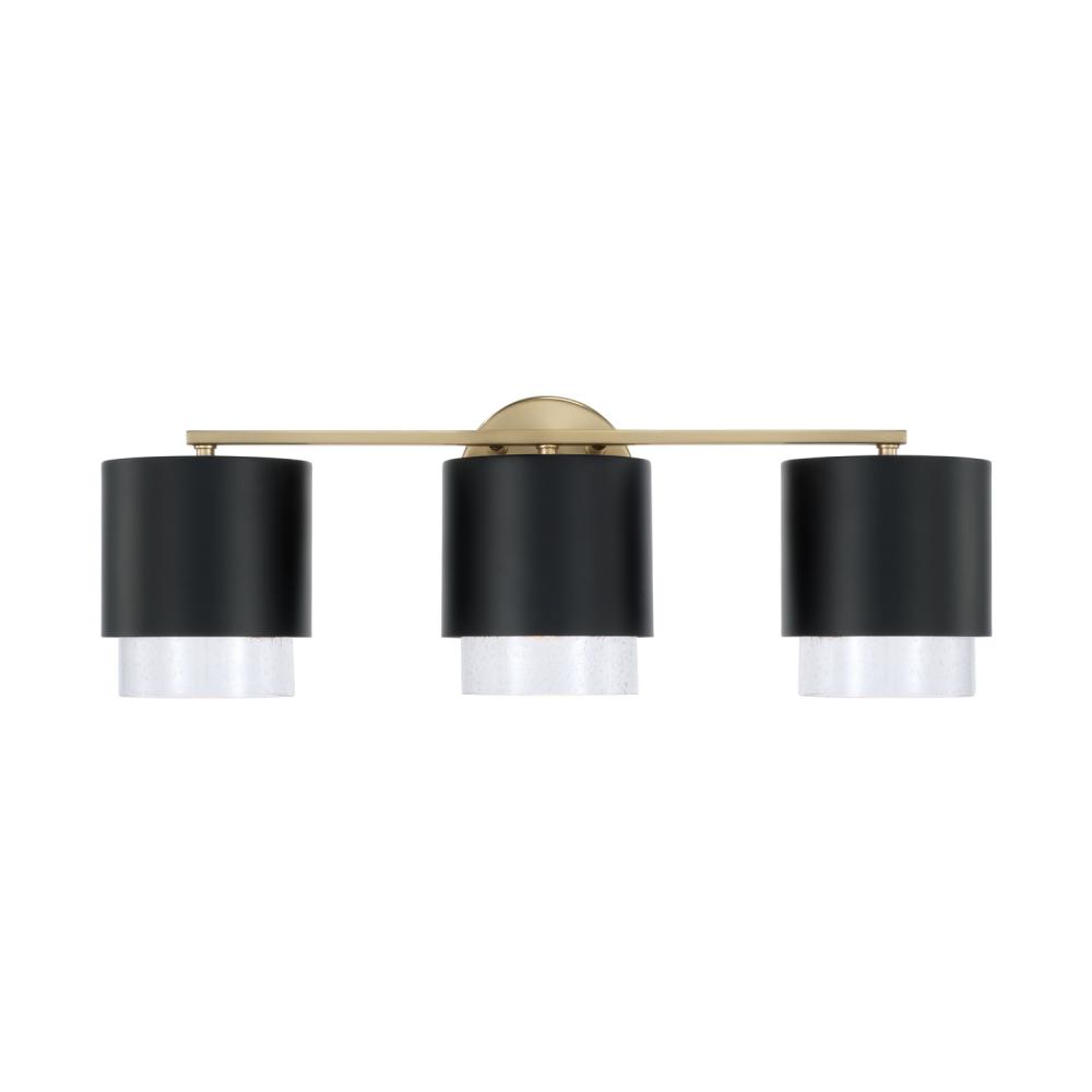 3-Light Cylindrical Metal Vanity in Matte Black with Matte Brass Interior and Seeded Glass by Capital Canada