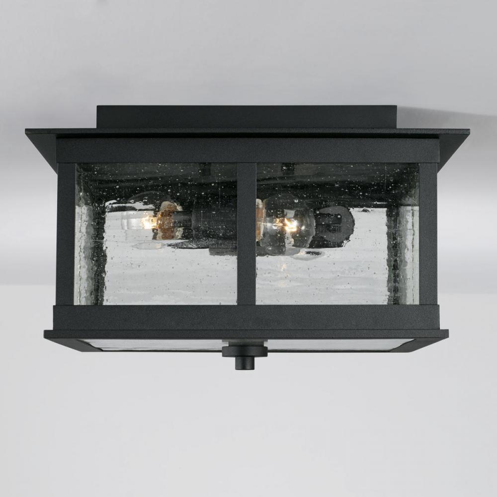 Clean lines and framed edges in the Barrett Collection give a graphic punch without being too overpowering. The textured water glass diffuses light and emits a warm glow for your porch or patio. These fixtures are part of our Rain or Shine Collection and are backed by our five-year warranty.