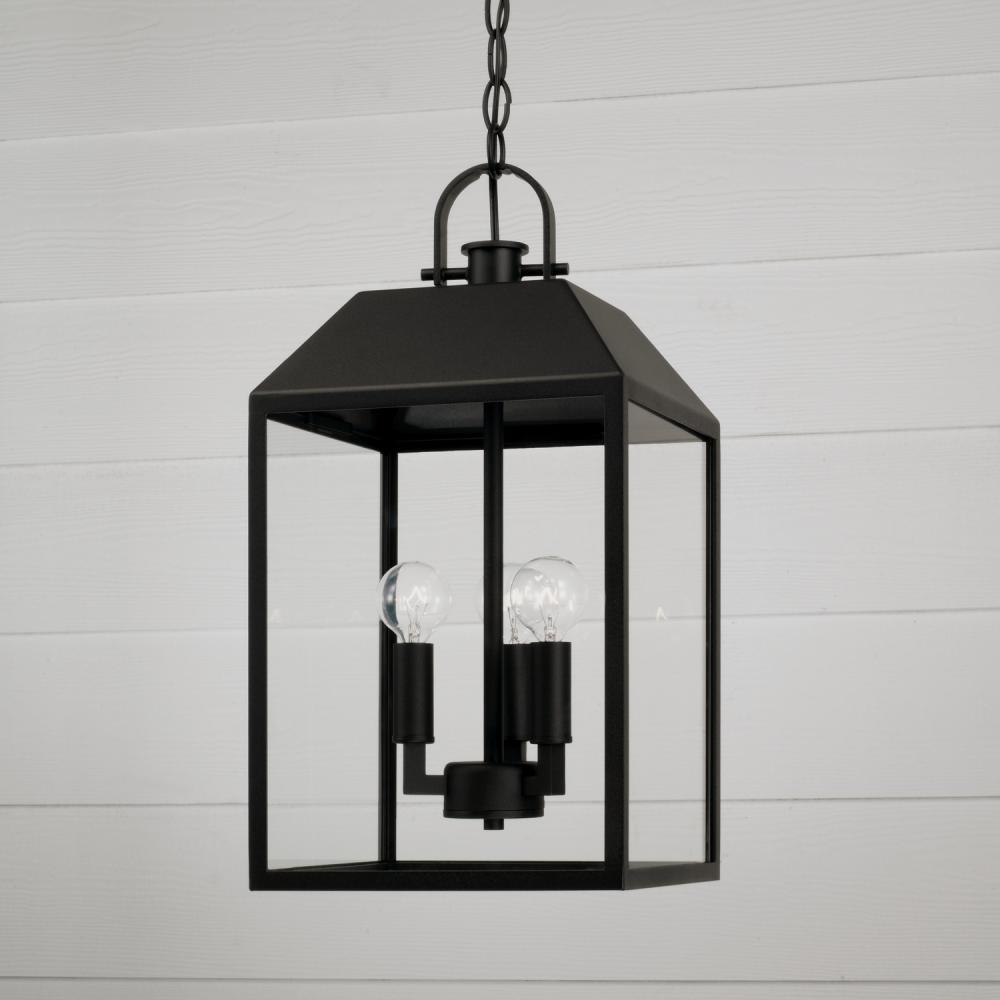 3-Light Outdoor Square Rectangle Hanging Lantern in Black with Clear Glass by Capital Canada
