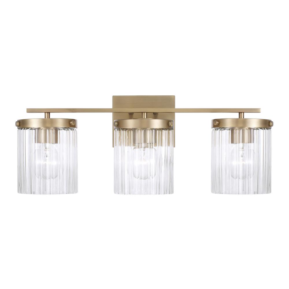 3-Light Vanity in Aged Brass with Clear Beveled Fluted Glass by Capital Canada