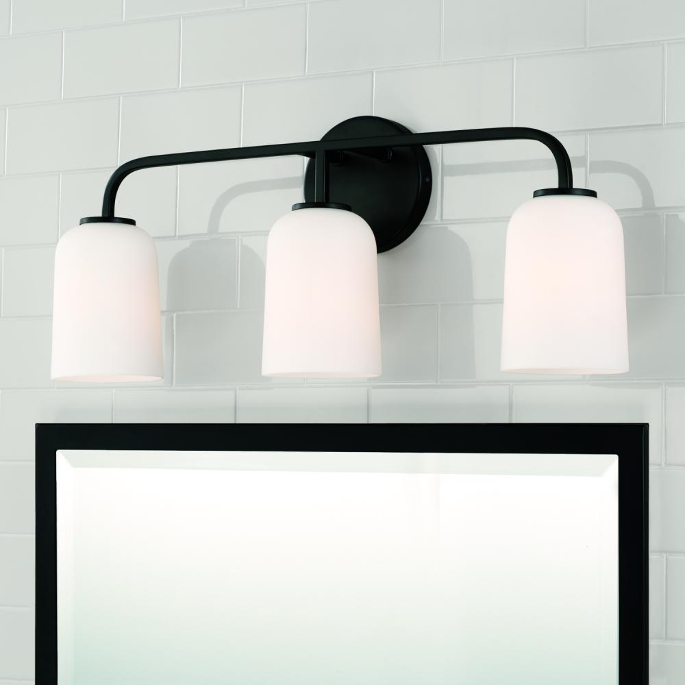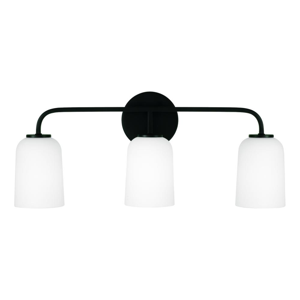 23.5"W x 9.75"H 3-Light Vanity in Matte Black with Soft White Glass