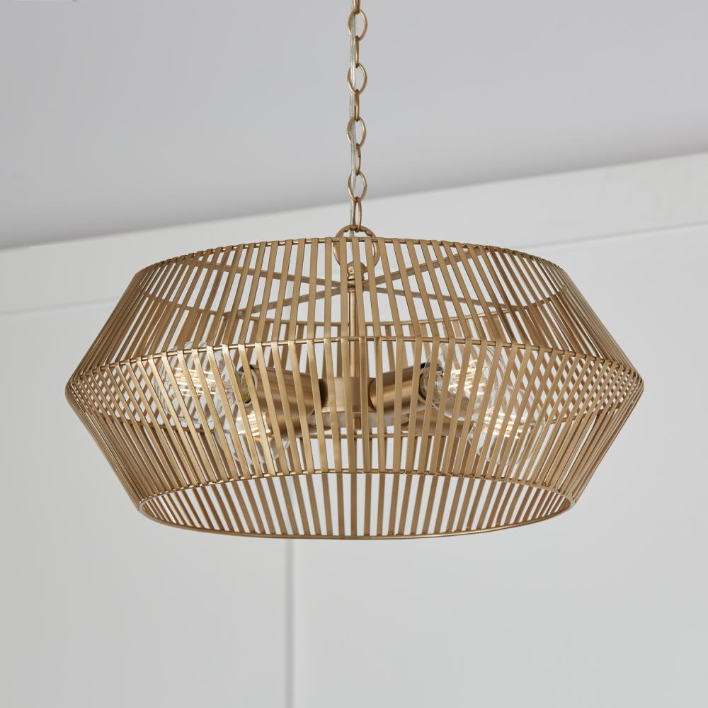 Modern metal meets elegant angles in the Kaiya Pendant. The open design invites visual intrigue, while the Matte Brass finish creates show-stopping style.