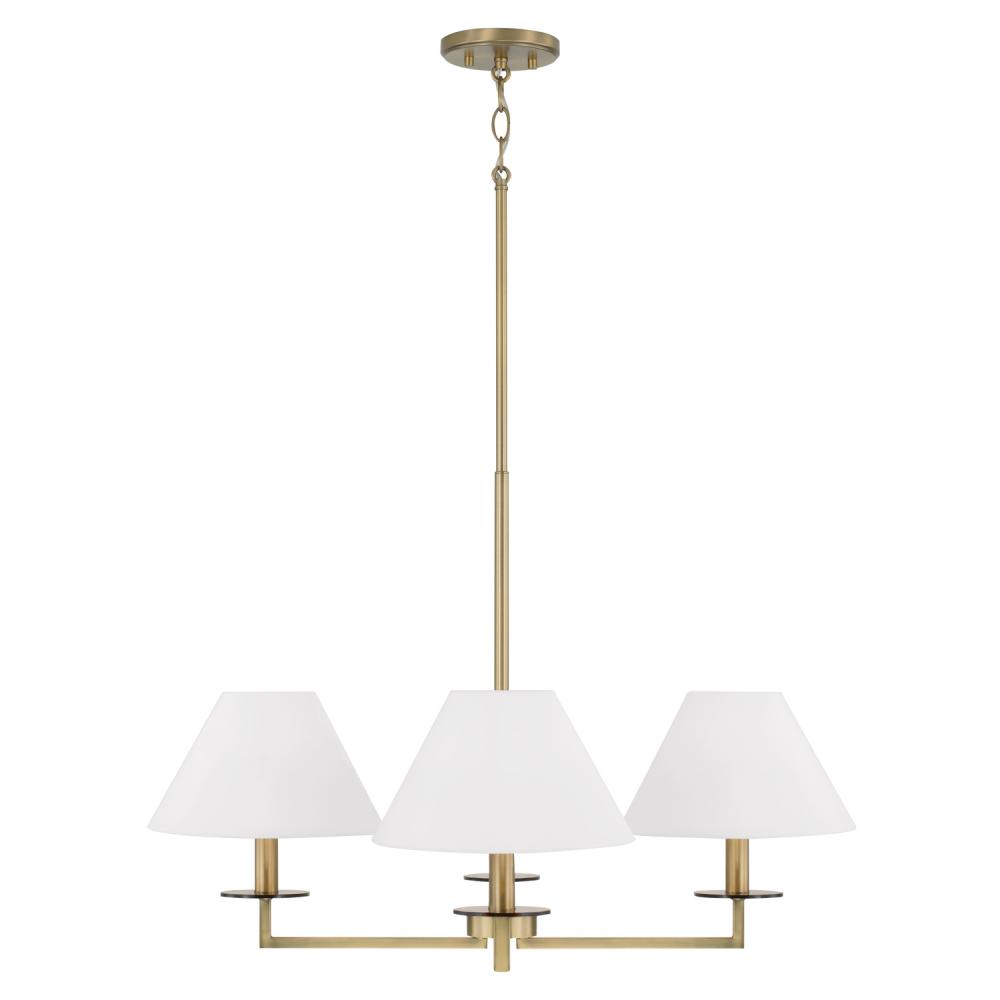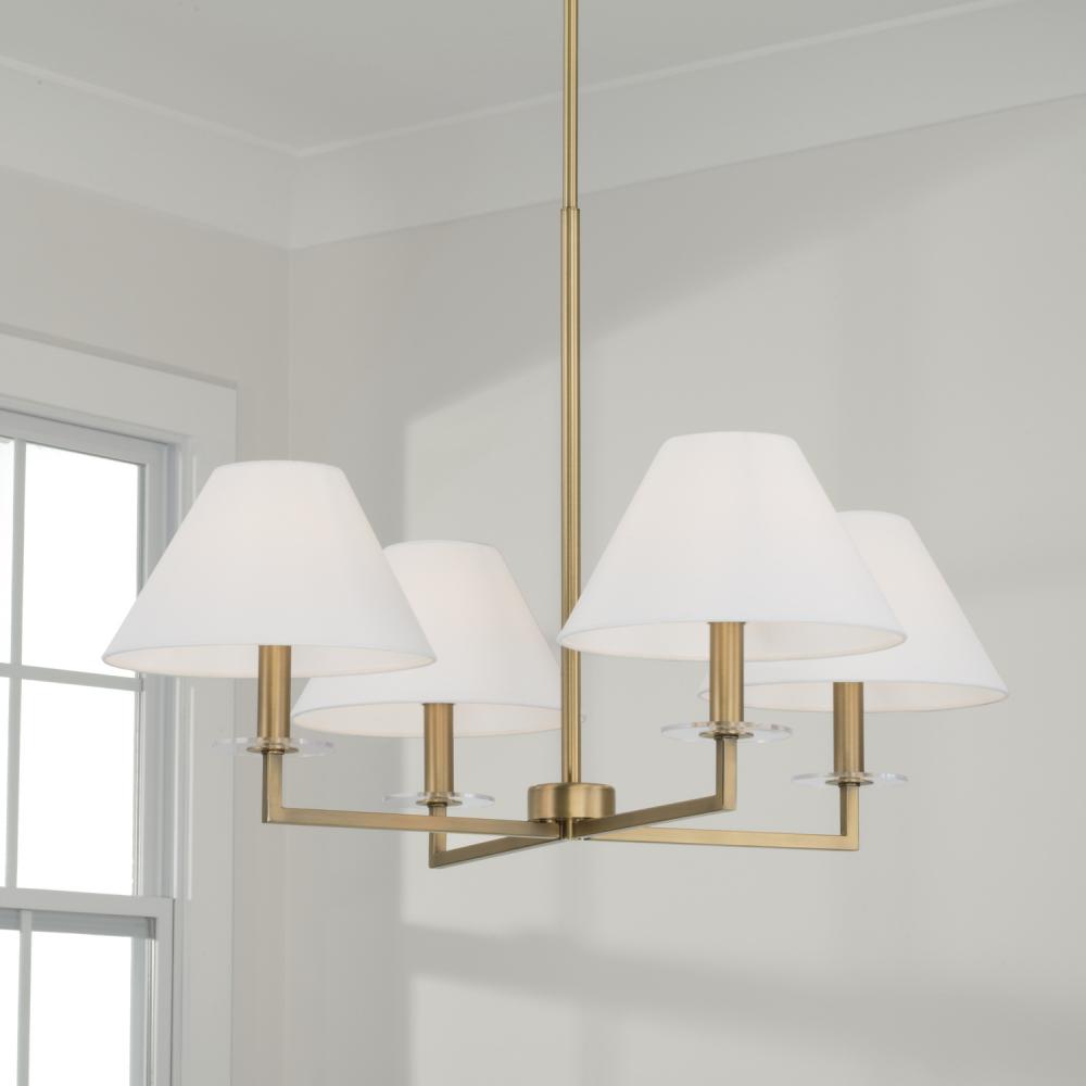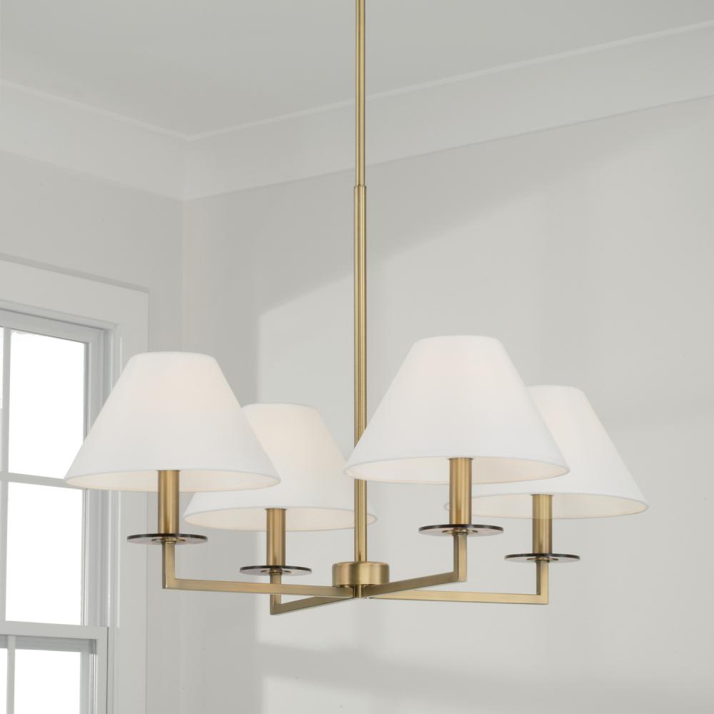 4-Light Chandelier in Aged Brass with White Fabric Stay-Straight Shades by Capital Canada
