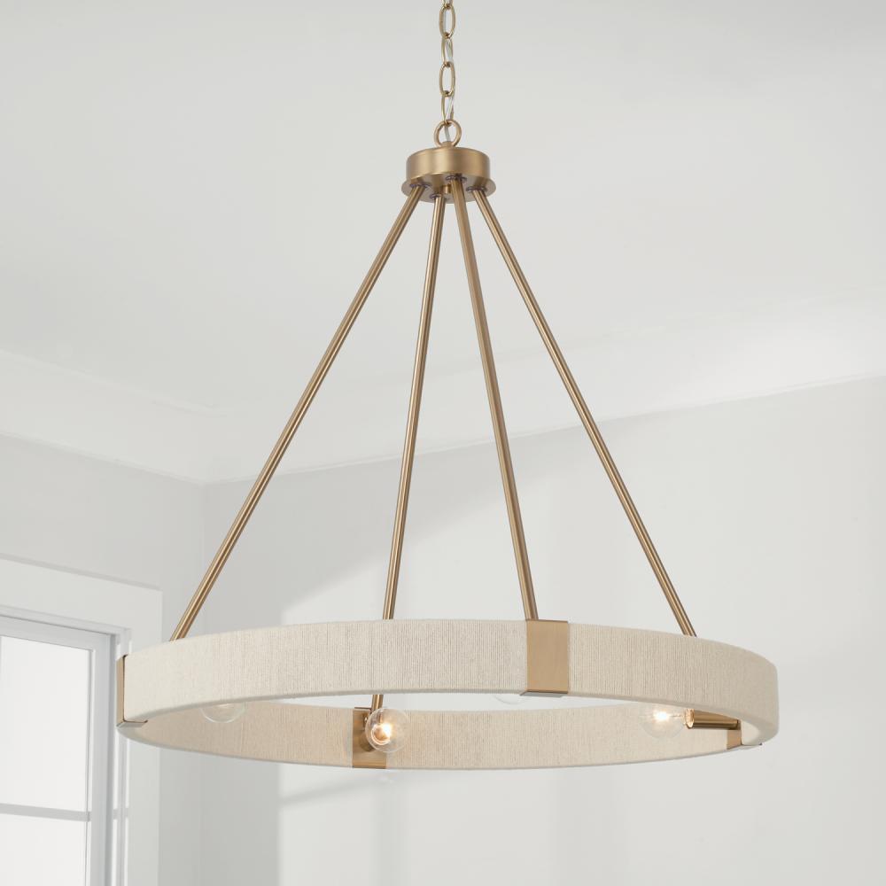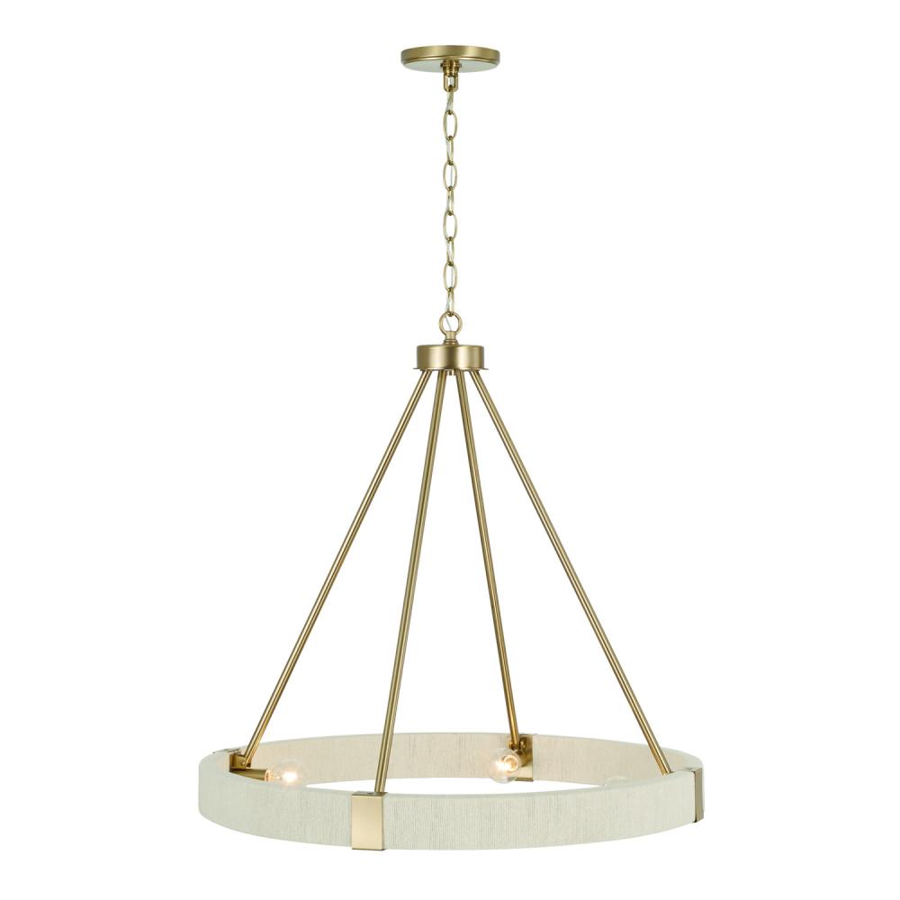 26"W x 25.5"H 4-Light Chandelier in Matte Brass with Bleached Natural Rope