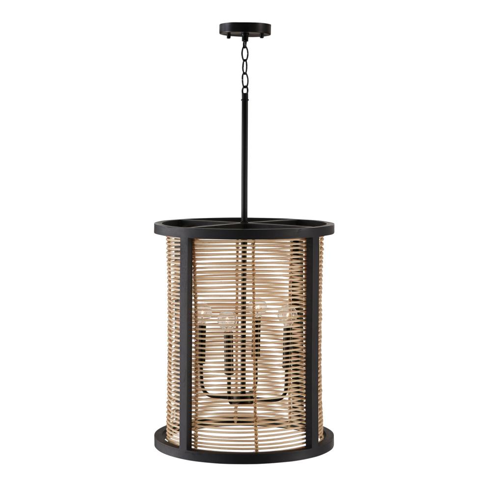 Modern flair meets timeless style with the Rico Foyer. The organic elements of mango wood in a Flat Black finish paired with hand-arranged rattan creates a look with classic charm with artisan appeal.
