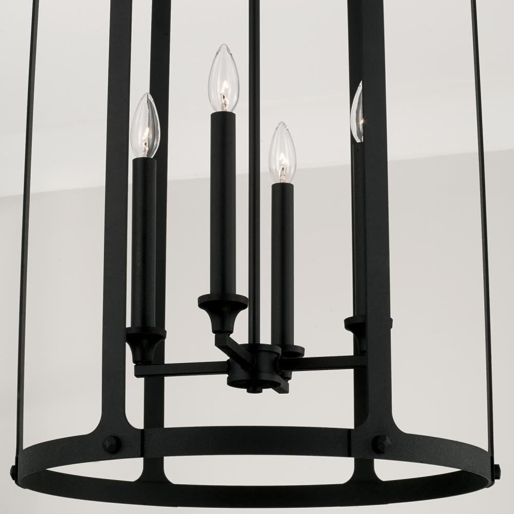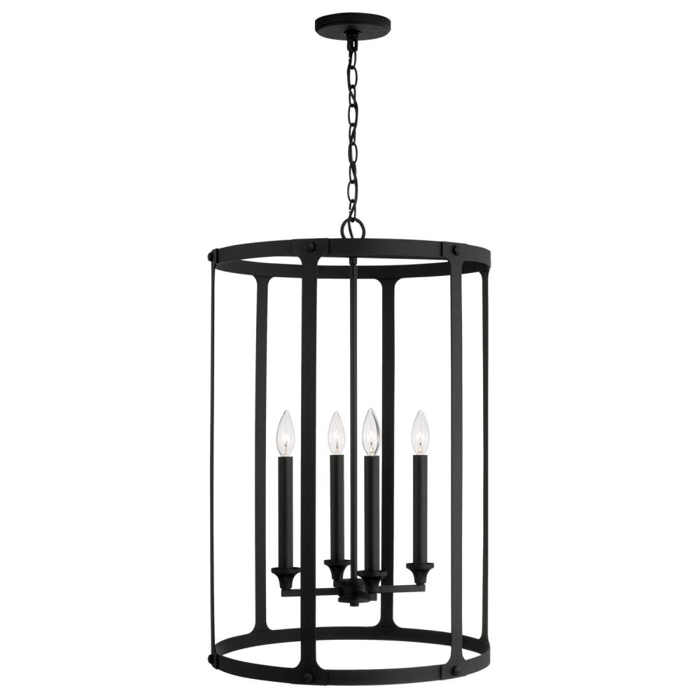 Bold lines and punctuated details create the Brennen Foyer. The Black Iron finish and rivet head accents provide a rugged, visual texture for industrial appeal.
