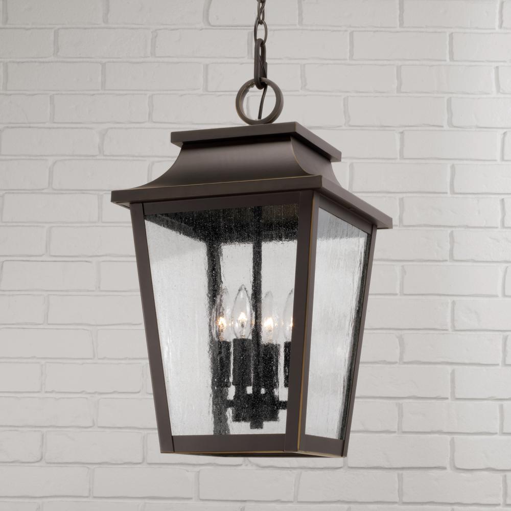 4-Light Outdoor Tapered Hanging Lantern in Oiled Bronze with Ripple Glass by Capital Canada
