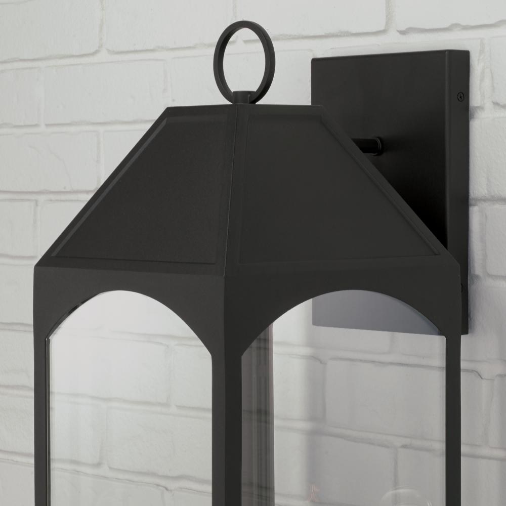 Enhance your exterior with the Burton Large Wall Lantern. The arched panes and tented top in a Black finish beautifully blend classic style with modern appeal. Part of our Rain or Shine Collection and backed by our five-year warranty.