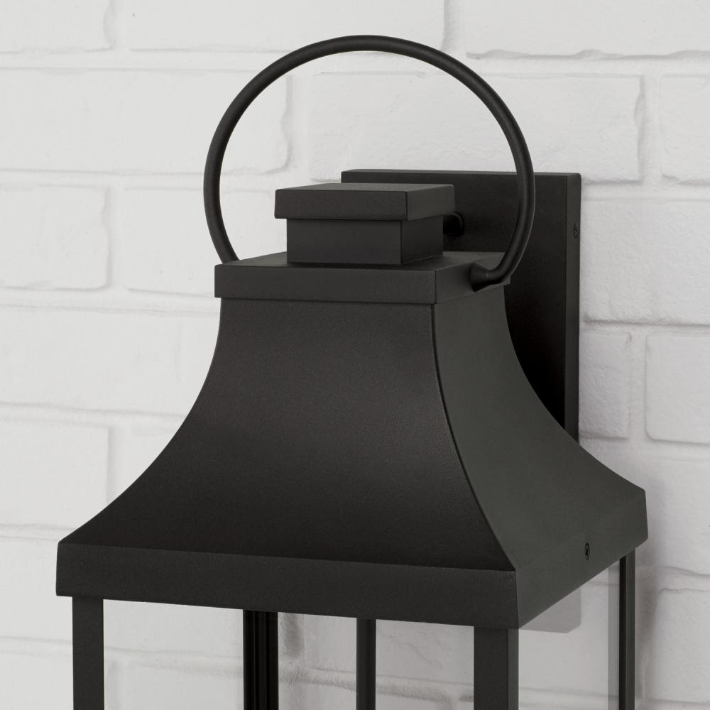 Transitional meets modern with the Bradford Small Wall Lantern. The bold lines and an oversized ring in a Black finish adds classic curb appeal to your home. Part of our Rain or Shine Collection and backed by our five-year warranty.