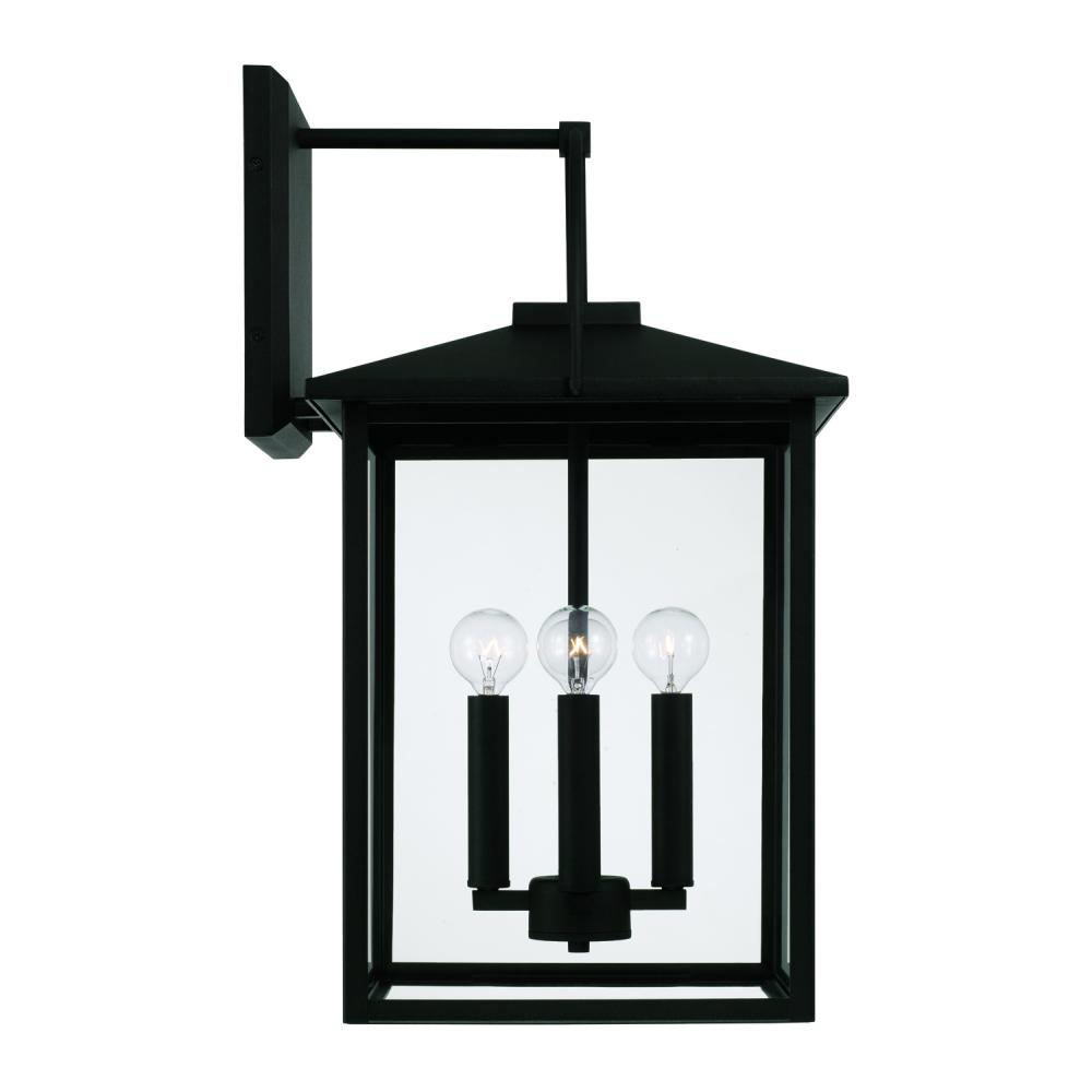 13.25"W x 22.75"H 4-Light Outdoor Wall Lantern in Black with Clear Glass